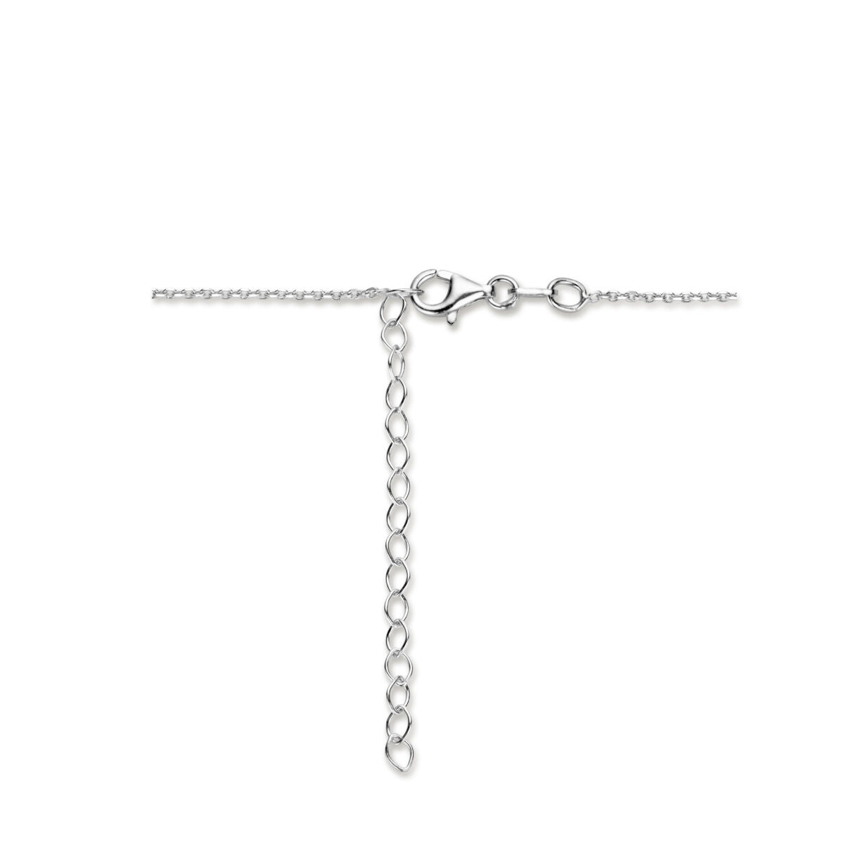 Gerhodineerd 925 zilveren collier met een zoetwaterparel. Het collier heeft een draaglengte van 45cm en een extensie van 5cm. De schakelbreedte is 1.3mm. Uitgevoerd met een karabijn sluiting.