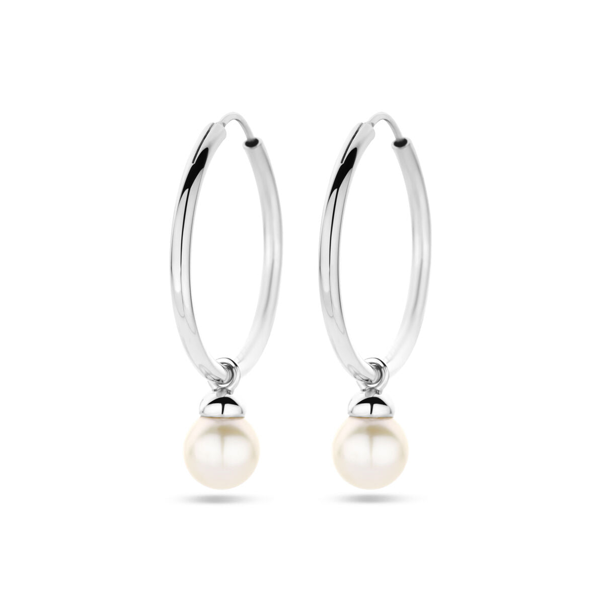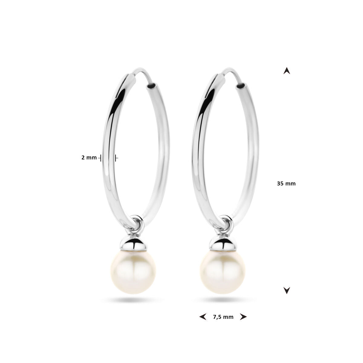 Gerhodineerd 925 zilveren oorringen uitgevoerd met een zoetwaterparel. De oorringen hebben een totale hoogte van 35mm.