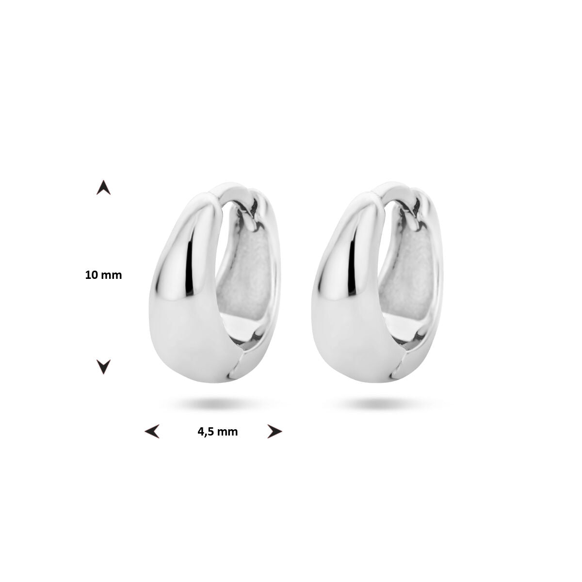 Gerhodineerd 925 zilveren klapoorringen. De oorringen hebben een afmeting van 10x4.5mm.
