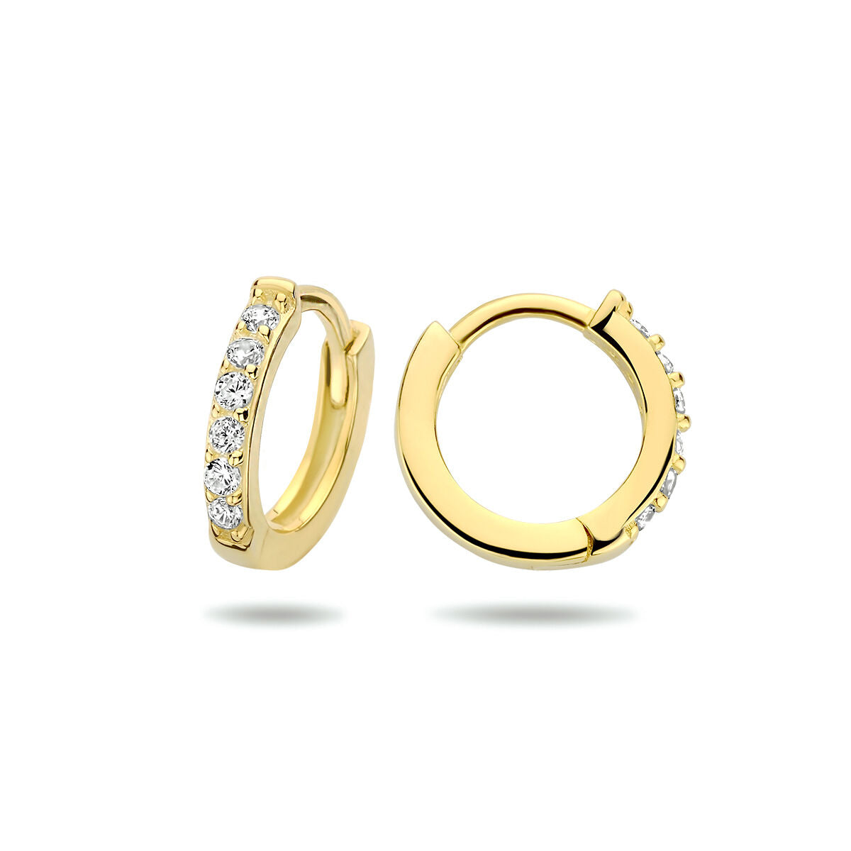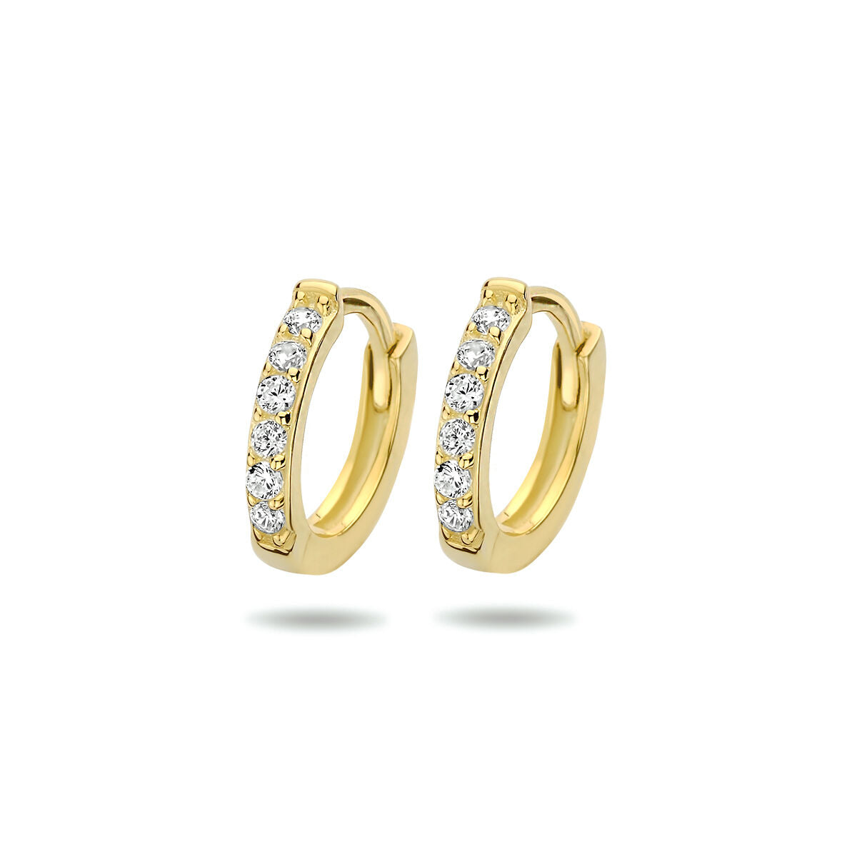 925 zilver vergulde klapoorringen uitgevoerd met een schitterende zirkonia rij. De oorringen hebben een afmeting van 9x1.7mm. Geen garantie op plating.