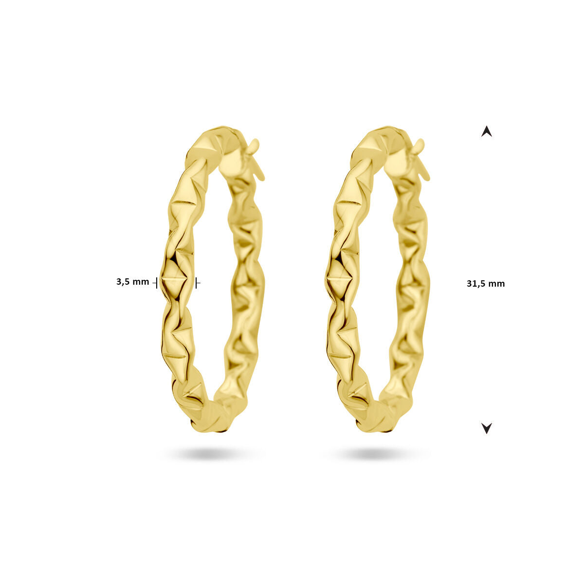 925 zilver vergulde oorringen met een breedte van 3.5mm. Geen garantie op plating.