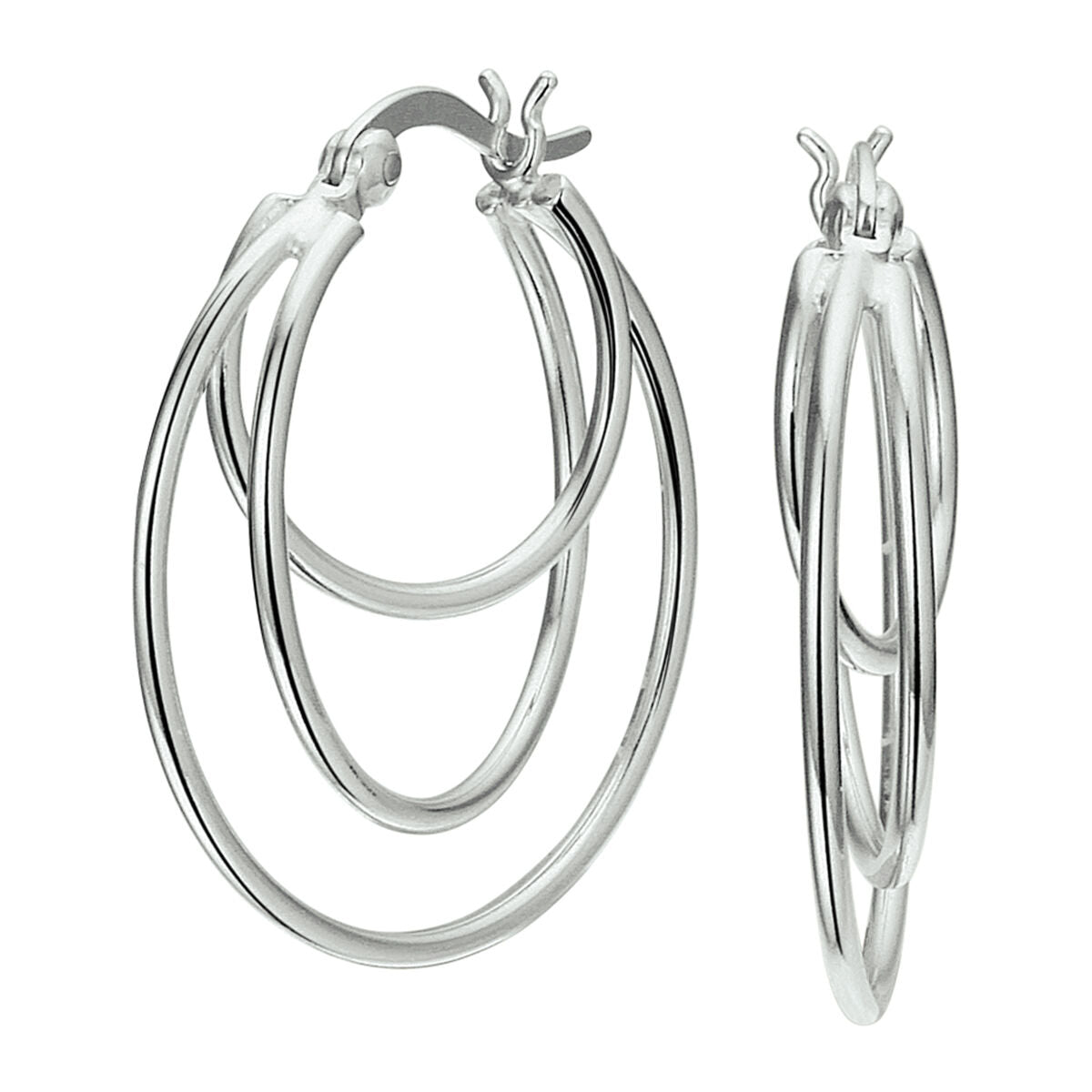 Gerhodineerd zilveren oorringen uitgevoerd met 3 buizen met een breedte van 1.2mm.