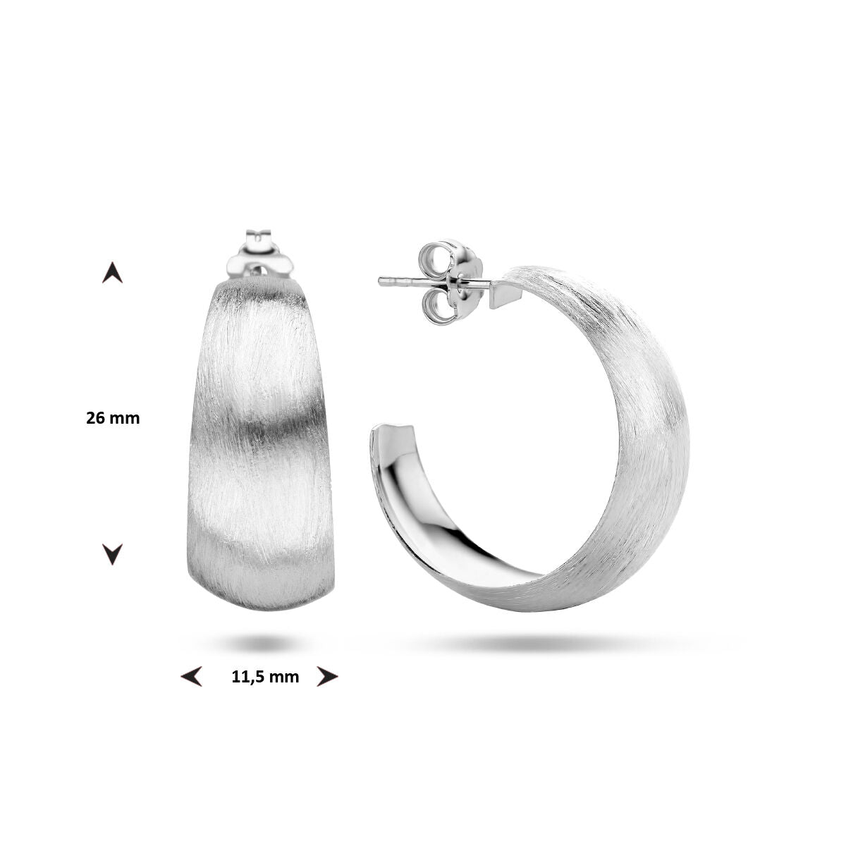 Gerhodineerd 925 zilveren stekeroorringen met een poli/matte afwerking. De oorringen hebben een breedte van 11.5mm.
