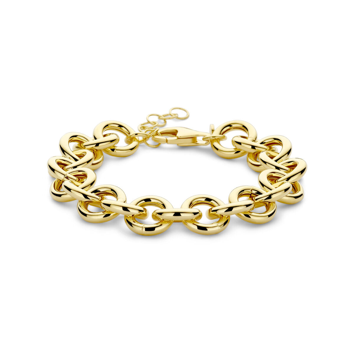 925 zilver vergulde armband met een draaglengte van 17cm en een extensie van 3cm. Uitgevoerd met een karabijn sluiting. De schakelbreedte is 12mm. Geen garantie op plating.