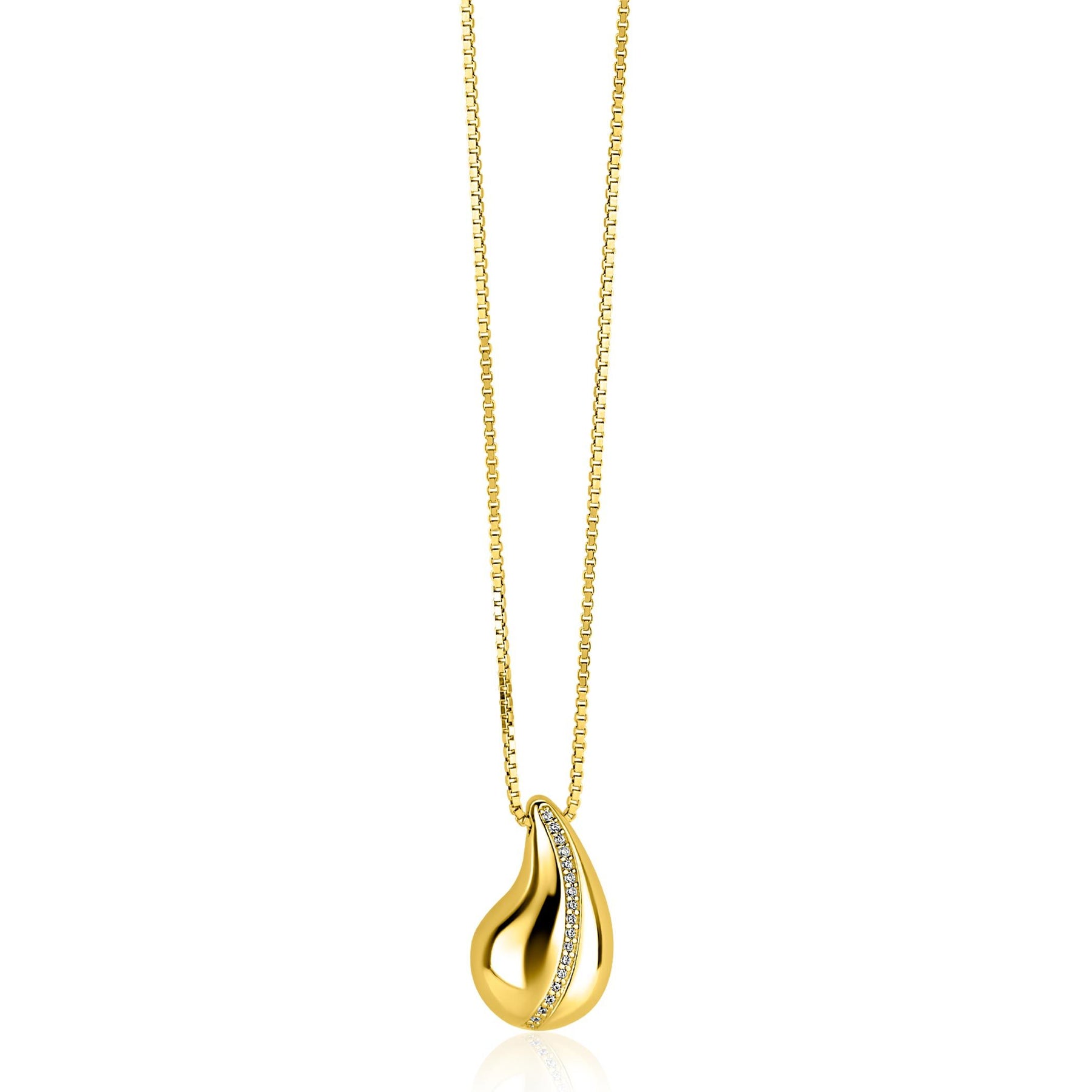 ZINZI gold plated zilveren venetiaanse ketting met een elegante druppelvormige hanger (20mm), bezet met een golvende rij fonkelende witte zirkonia's. De ketting is in lengte verstelbaar van 45cm tot 48cm. Vervaardigd van eerste gehalte zilver (925) en extra geel verguld..