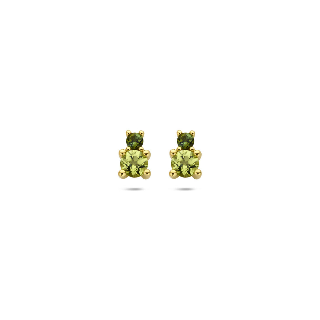 14k Geelgouden oorknopjes met peridot en groene toermalijn