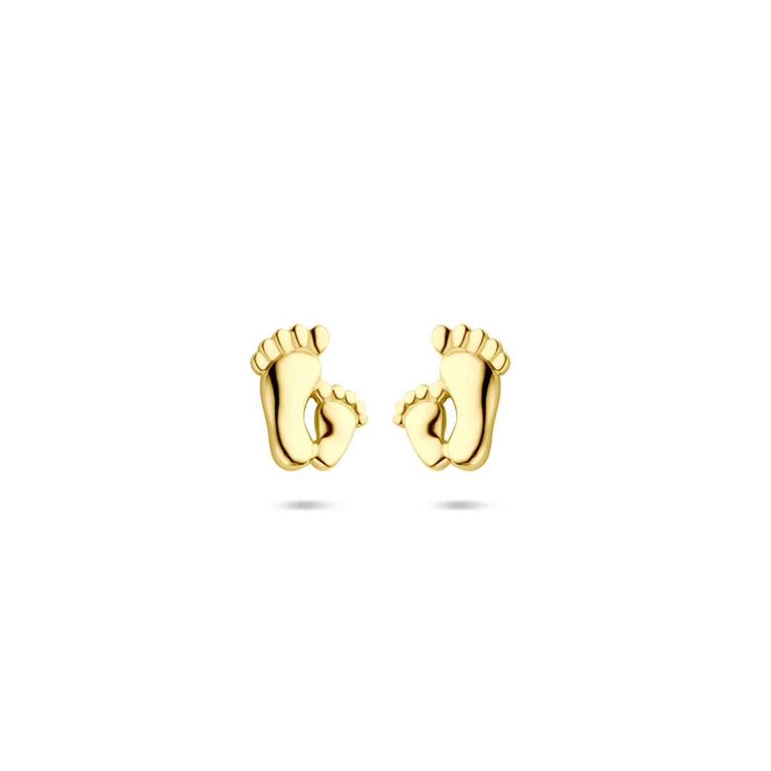 14k Geelgouden oorknoppen in de vorm van babyvoetjes