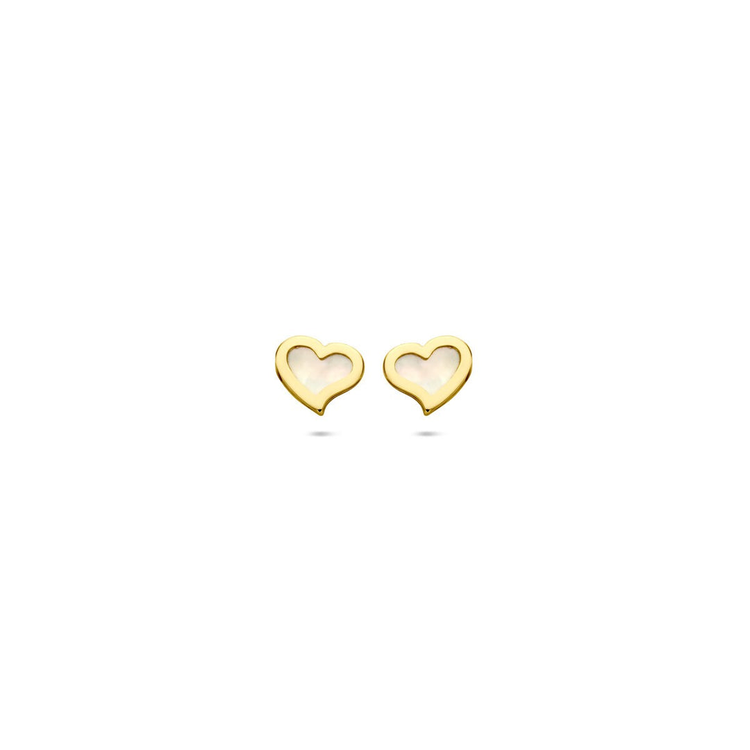 14k Geelgouden oorknoppen in hartvorm met parelmoer