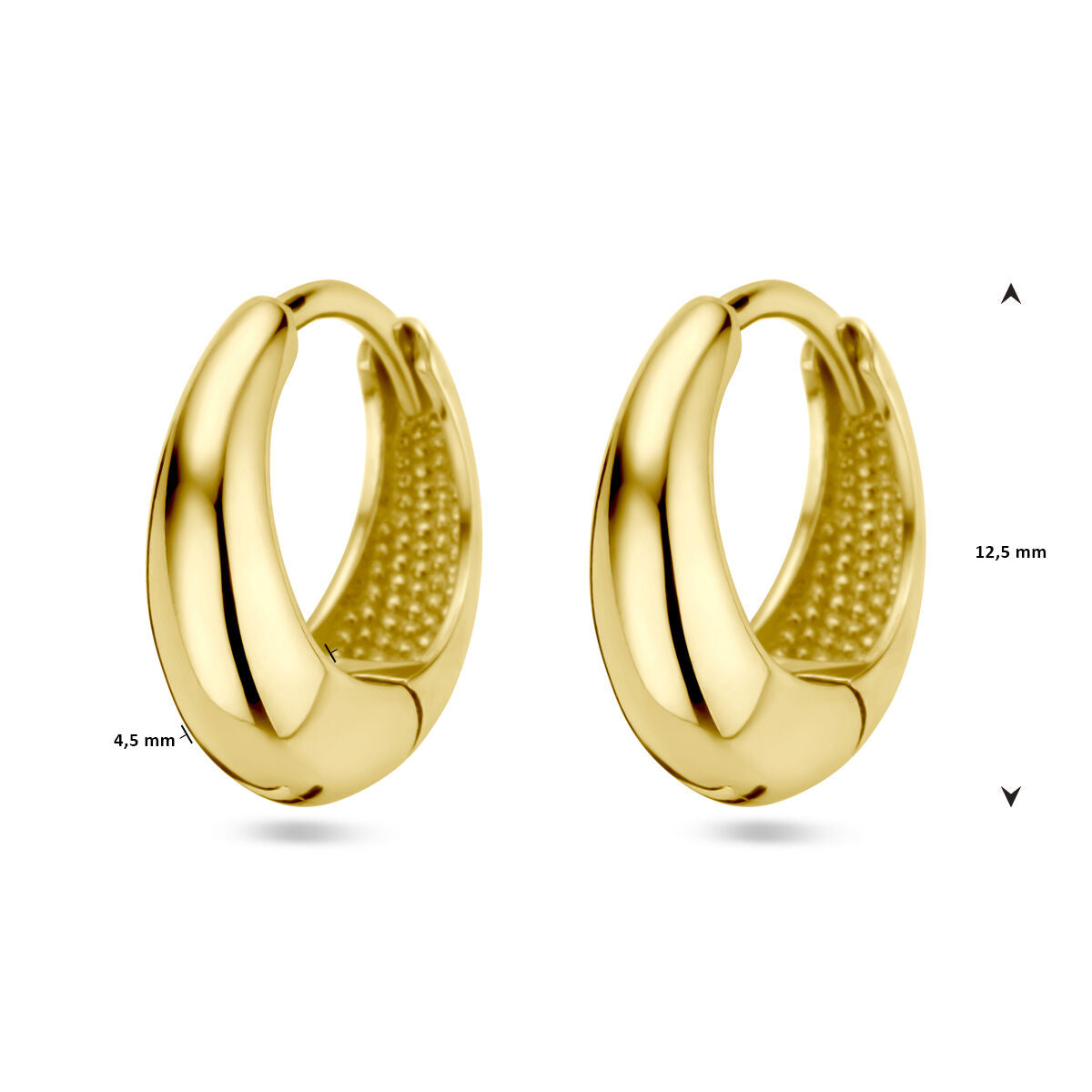 Tropfenohrringe aus 14-karätigem Gelbgold mit einer Größe von 12,5 x 4,5 mm.