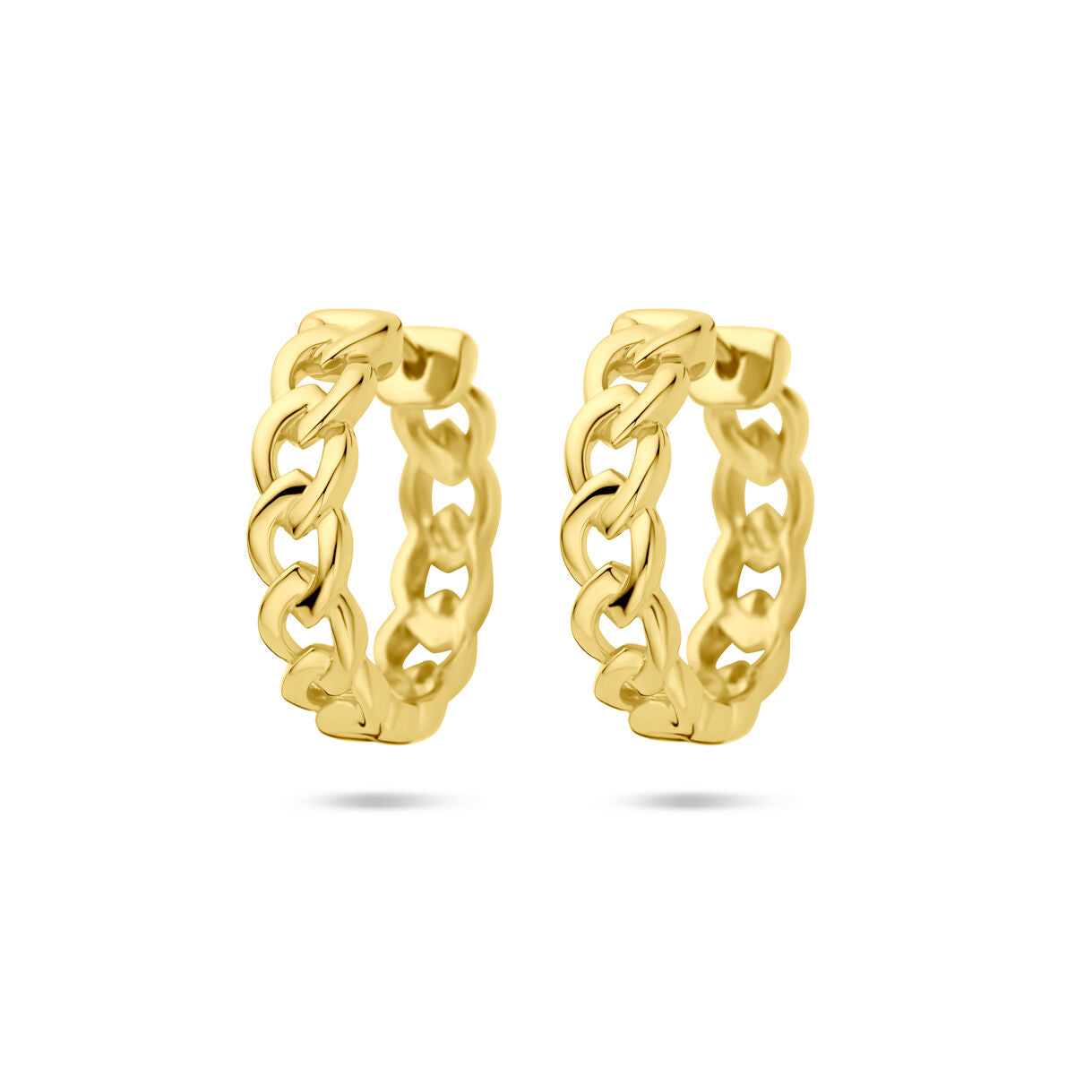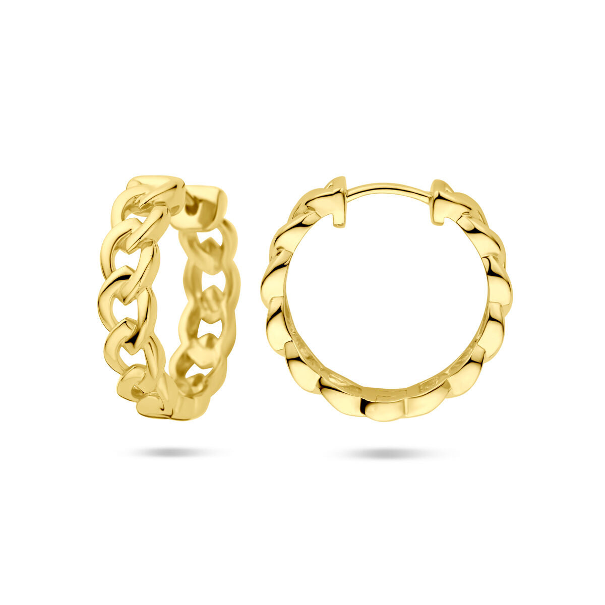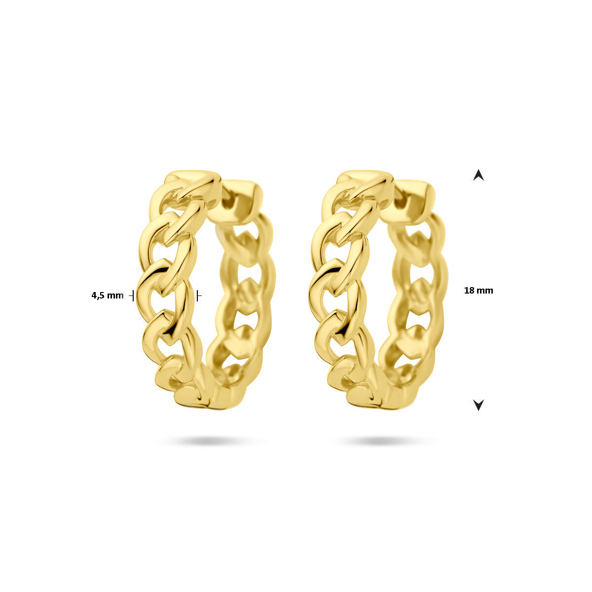 925 zilver vergulde klapoorringen met een schakelmotief. De oorringen hebben een diameter van 18mm. Geen garantie op plating.