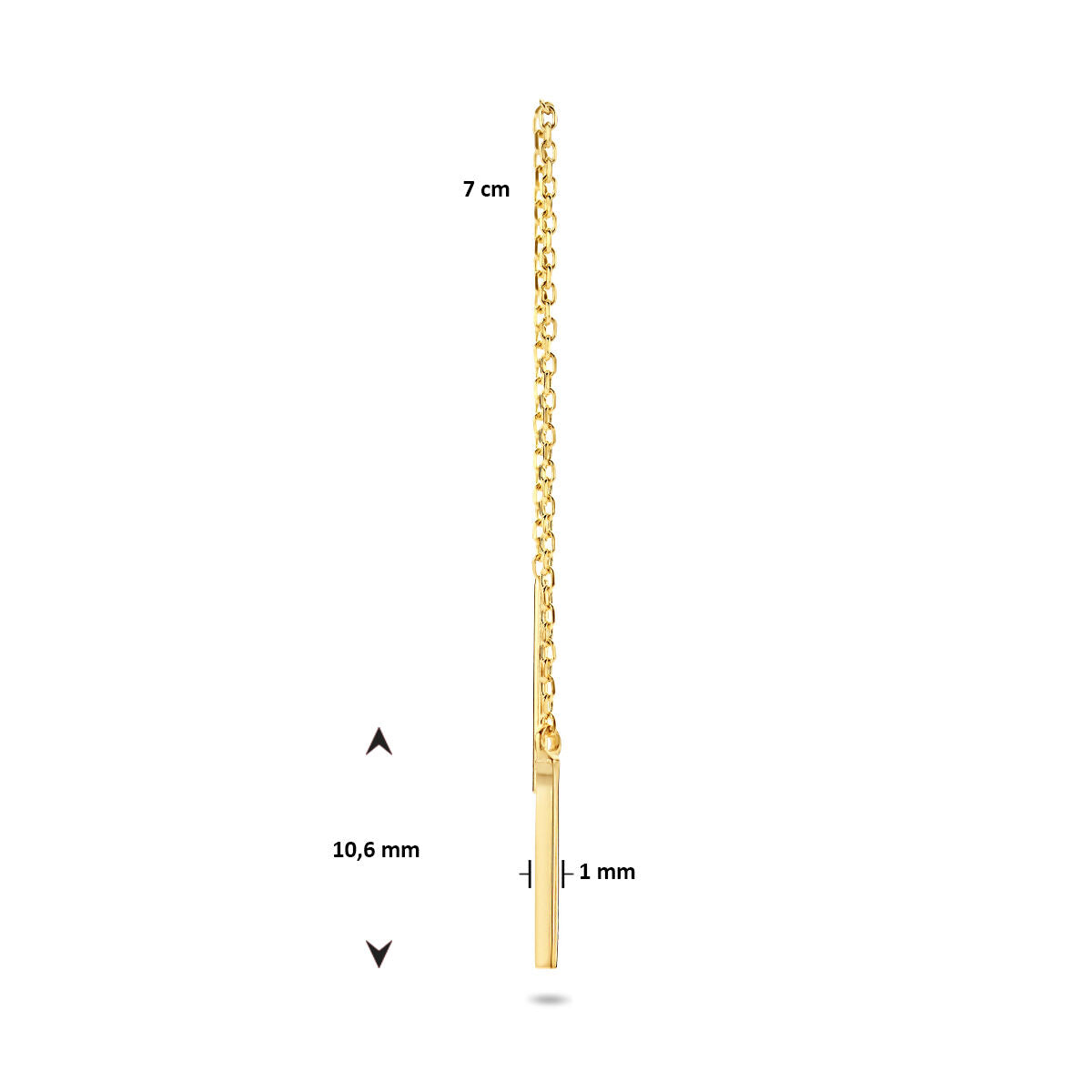 Durchsteckohrring aus 14-karätigem Gelbgold mit Steg. Der Ohrring hat eine Gesamtlänge von 7cm. Der Stab hat eine Größe von 10,5x1mm. Diese Ohrringe werden pro Stück statt pro Paar verkauft.