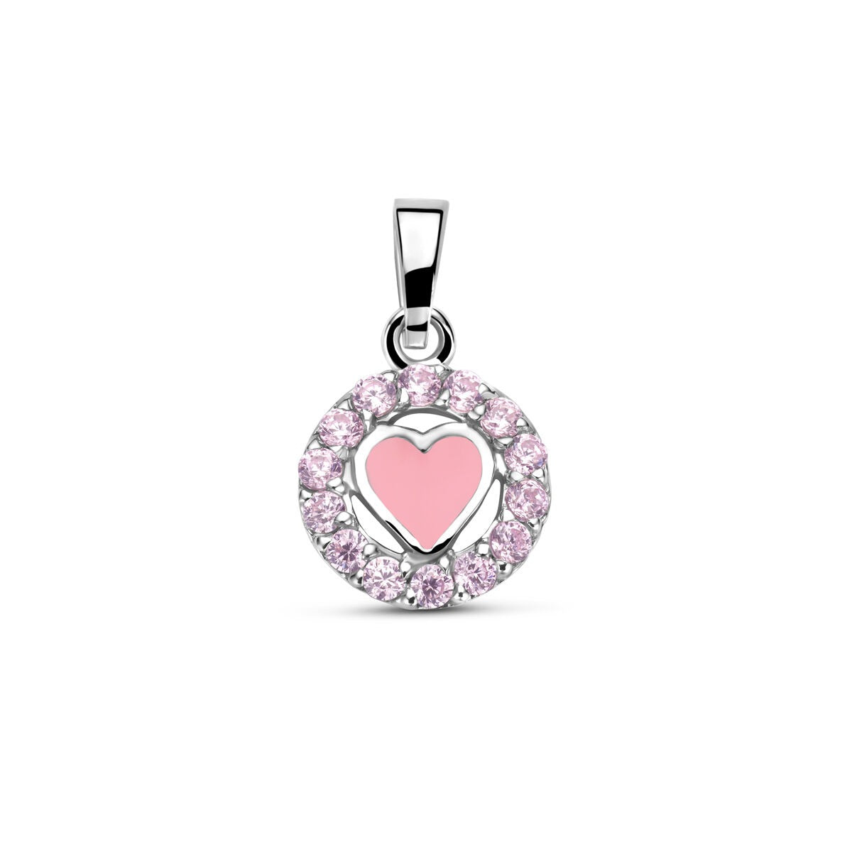 Zilveren hanger met roze emaille hart en zirkonia – 15 x 9 mm