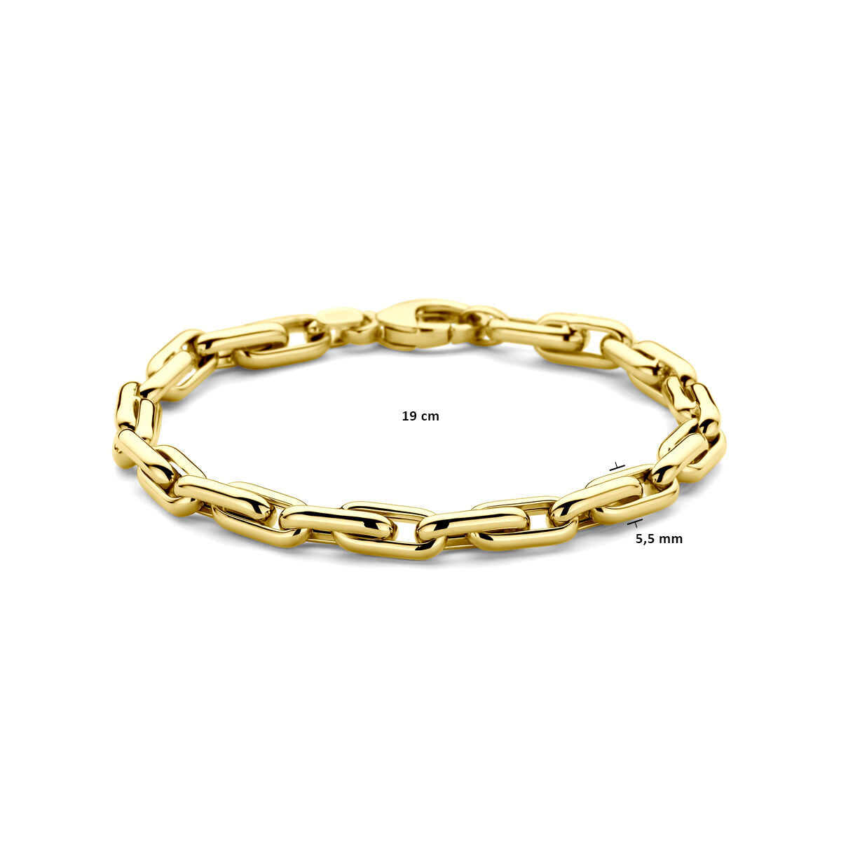 14k Geelgouden armband met een schakelbreedte van 5.5mm en draaglengte van 19cm. Uitgevoerd met karabijnsluiting.