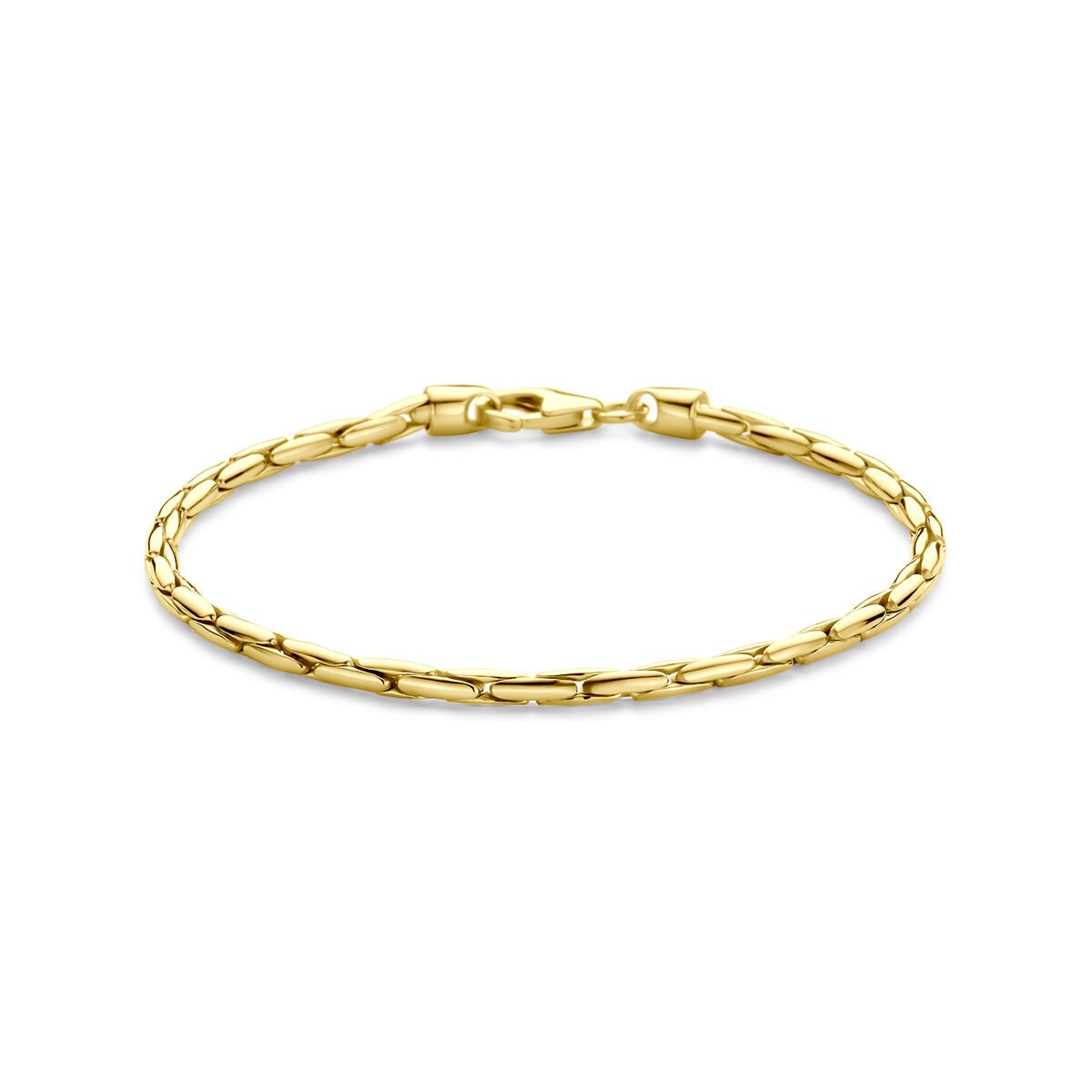 Deze elegante gourmet armband voor dames combineert luxe met verfijning. Vervaardigd uit 14 karaat geelgoud met een kern van 925 zilver – bekend als Silgold – biedt dit sieraad de rijke uitstraling van goud met de stevigheid van zilver. De fijn afgewerkte schakelbreedte van 2,8 mm zorgt voor een subtiele glans rond de pols, terwijl de klassieke gourmette schakeling het tijdloze karakter van dit ontwerp onderstreept.