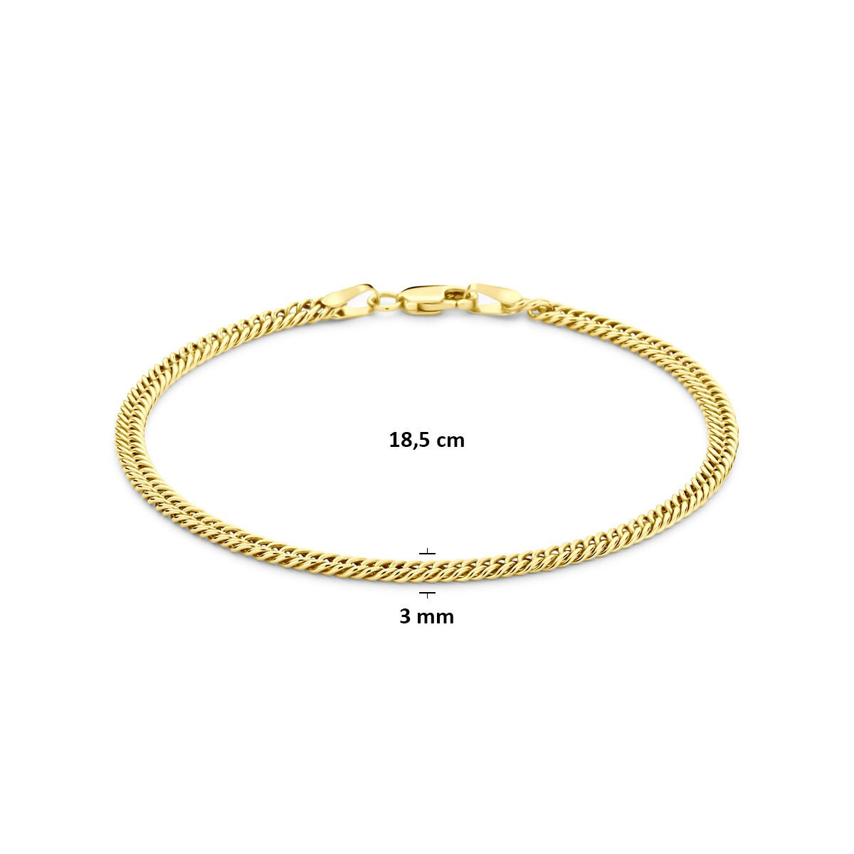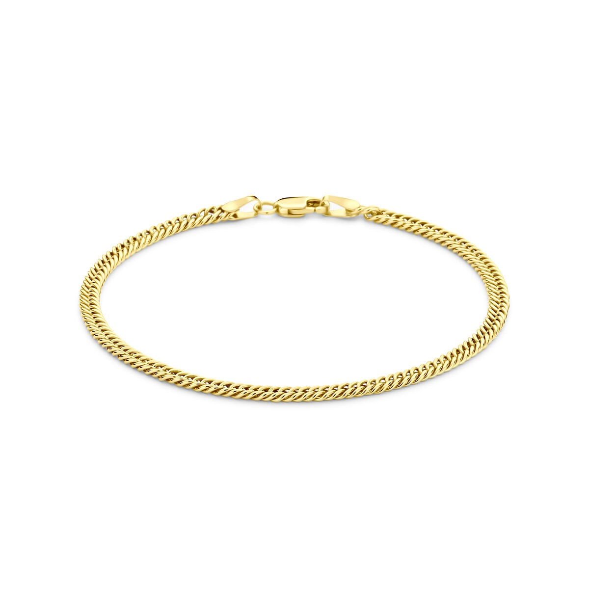 Deze 14 karaat geelgouden armband met een kern van 925 zilver combineert luxe met duurzaamheid en draagcomfort. Het sieraad is vervaardigd in Silgold, waarbij een stevige zilveren basis is omhuld met een rijke laag 14k goud. Het resultaat is een elegante armband met de uitstraling van massief goud, maar lichter van gewicht.