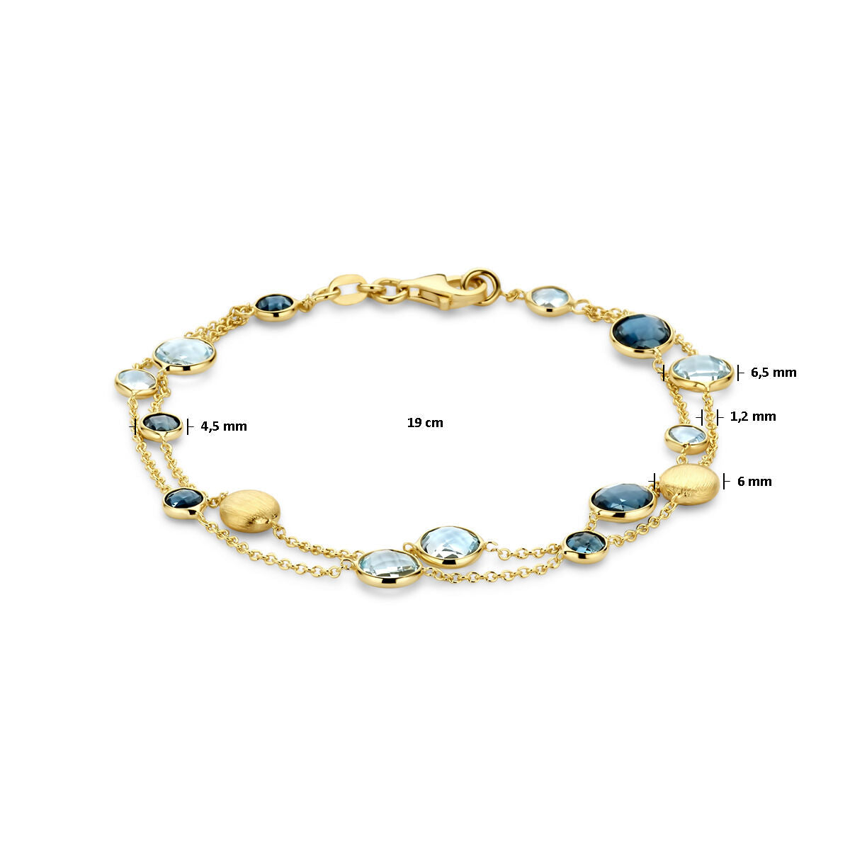 armband rondjes, sky blue topaas en london blue topaas 19 cm 14K geelgoud