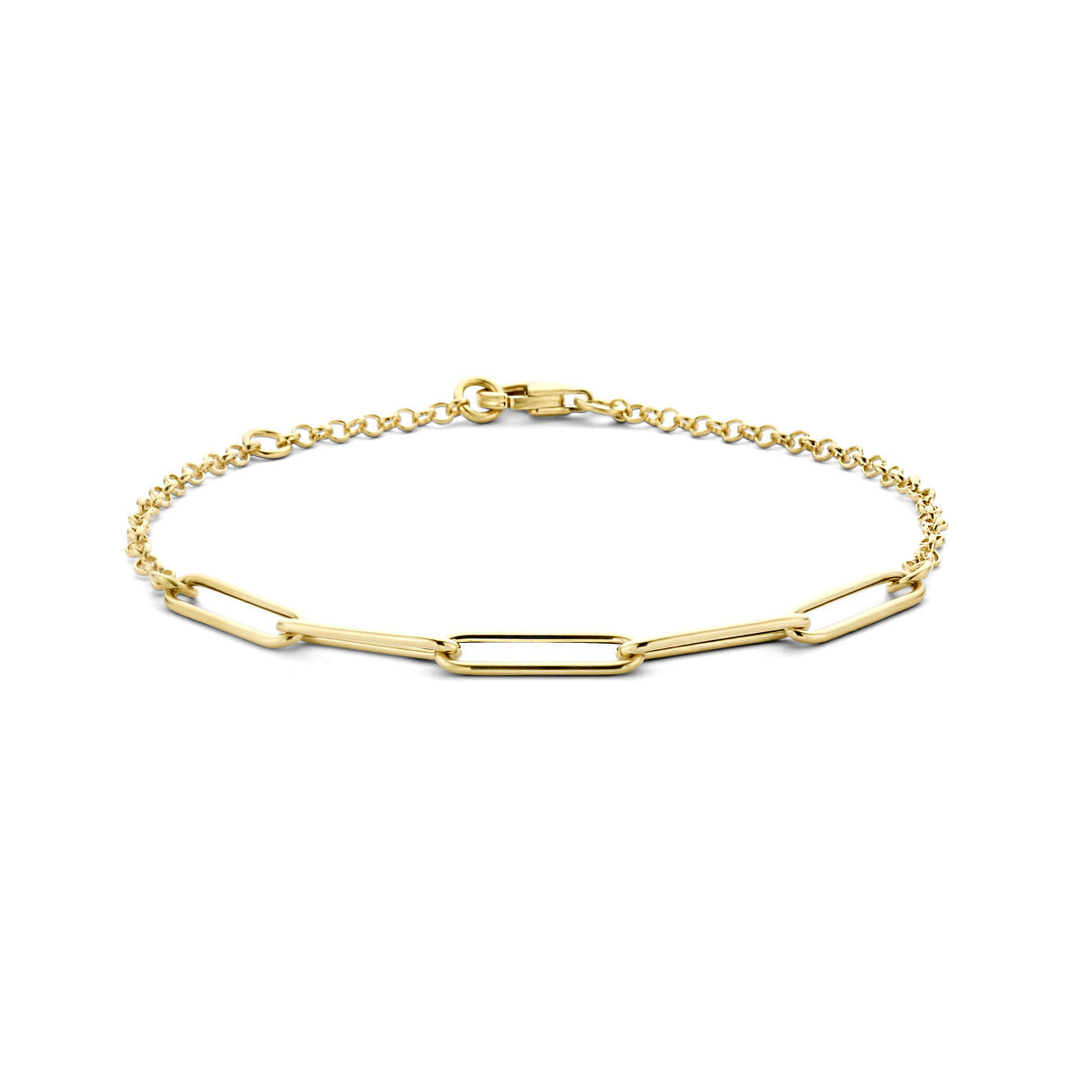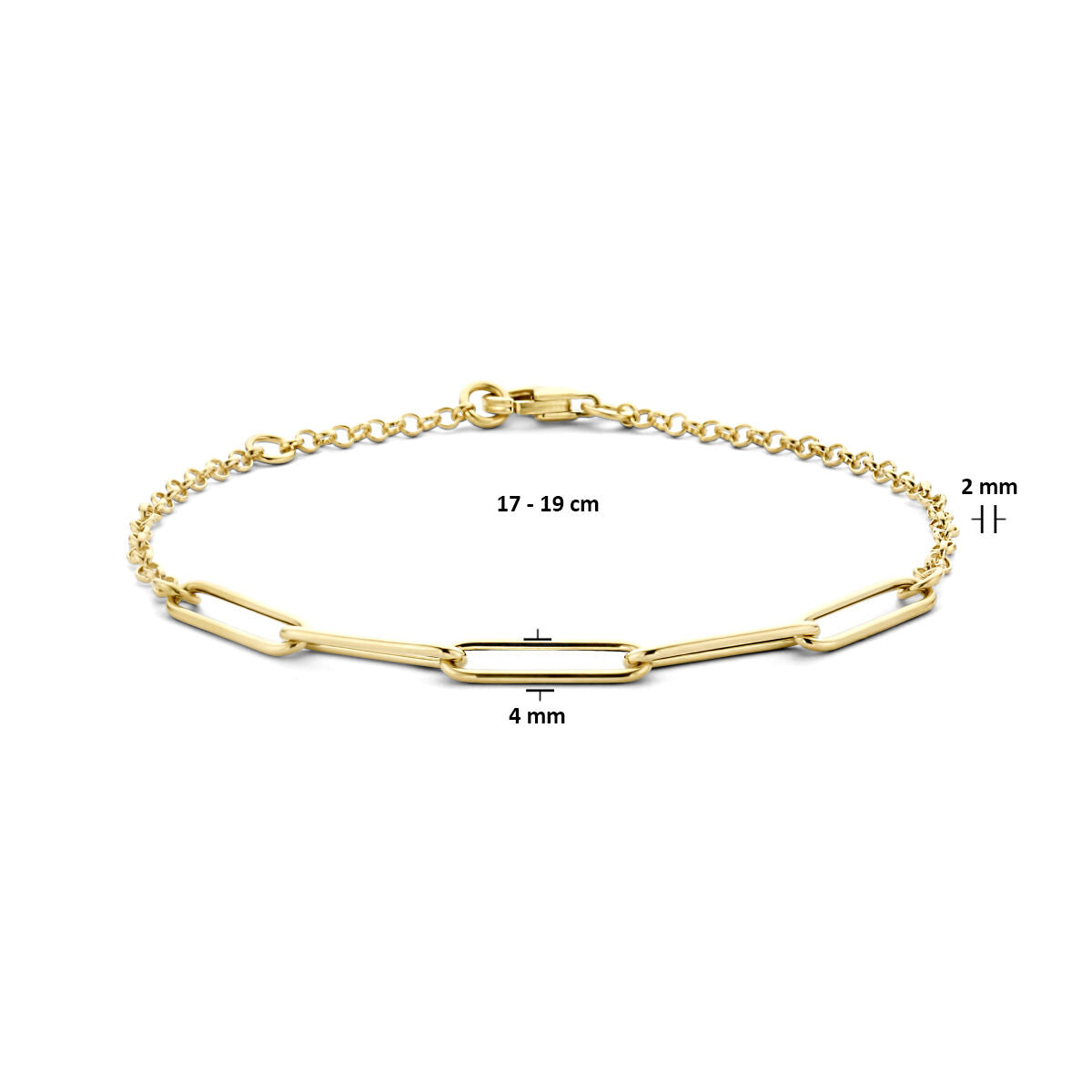 Armband aus 14-karätigem Gelbgold mit einem Büroklammer-Glied von 4 mm und einem Jasseron-Glied von 2 mm. Das Armband hat Tragelängen von 17 und 19 cm. Ausgestattet mit einem Karabinerverschluss.