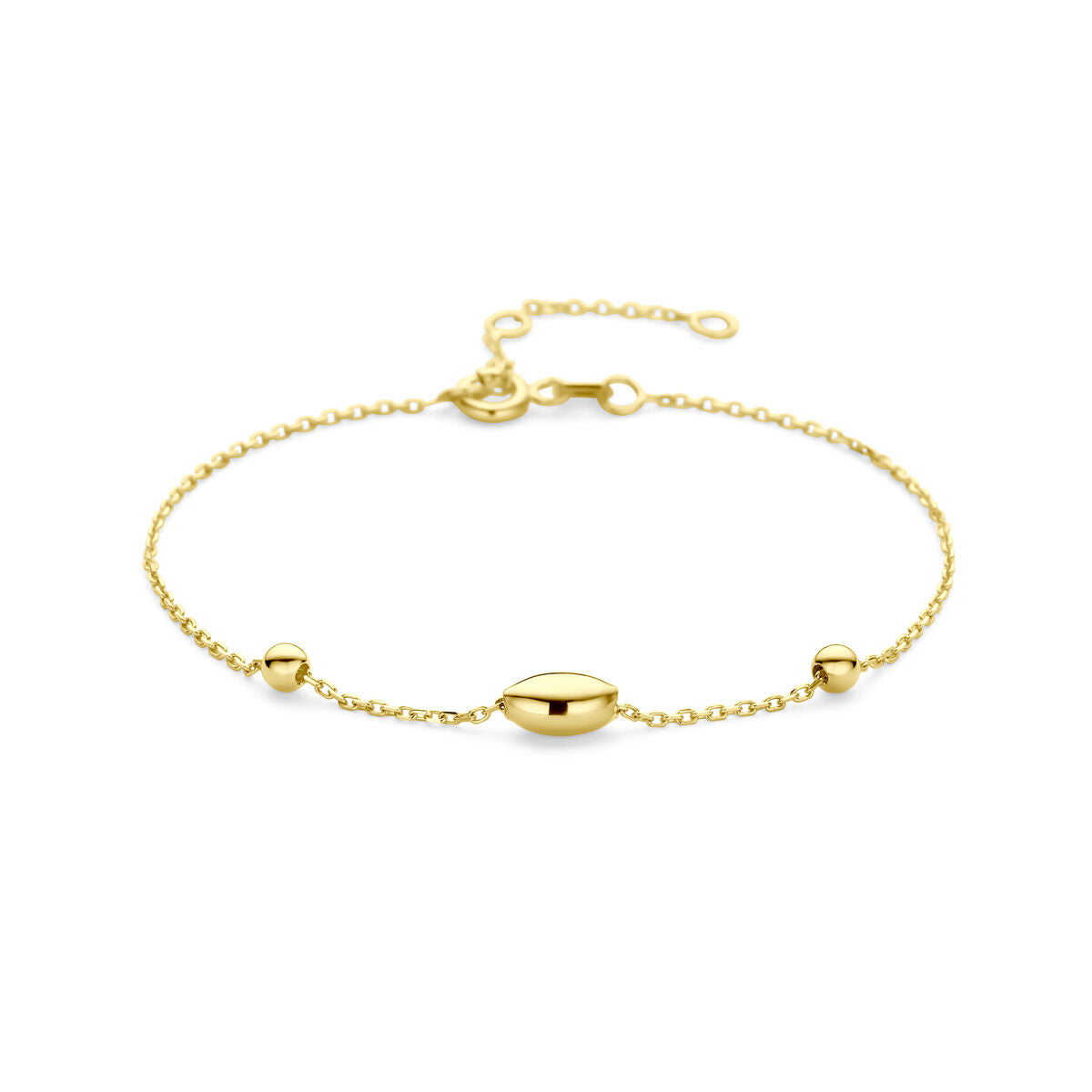 Armband aus 14-karätigem Gelbgold mit Oval und Kugeln. Das Armband hat Tragelängen von 16, 17,5 und 19 cm.