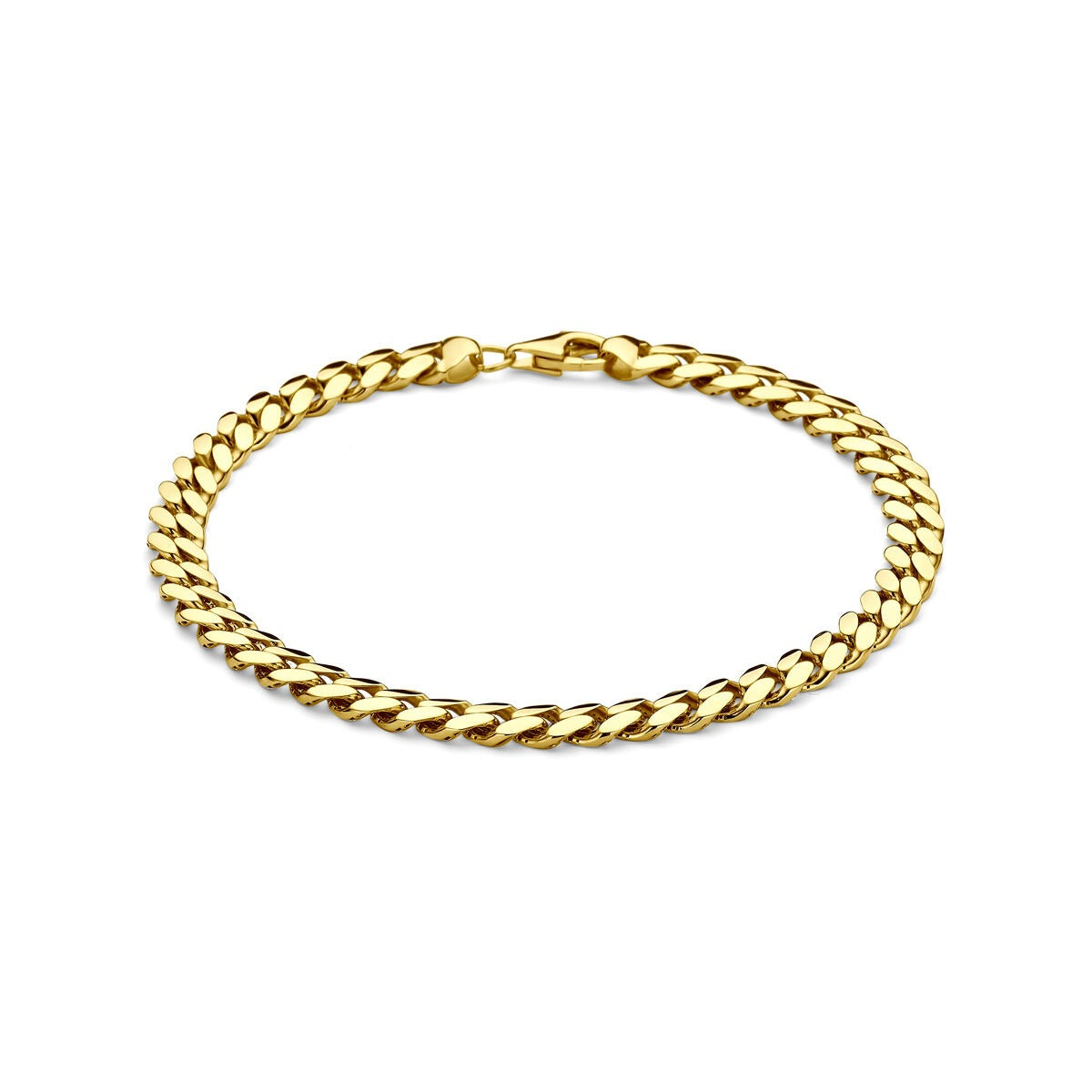 Deze 14 karaat geelgouden armband is een krachtig en stijlvol statement voor de moderne man. De strak geslepen gourmette schakels van 5.7 mm breed geven het sieraad een robuuste, maar verfijnde uitstraling. Dankzij de rijke glans van het geelgoud en de klassieke afwerking komt deze gouden heren armband perfect tot zijn recht bij zowel casual als formele outfits.