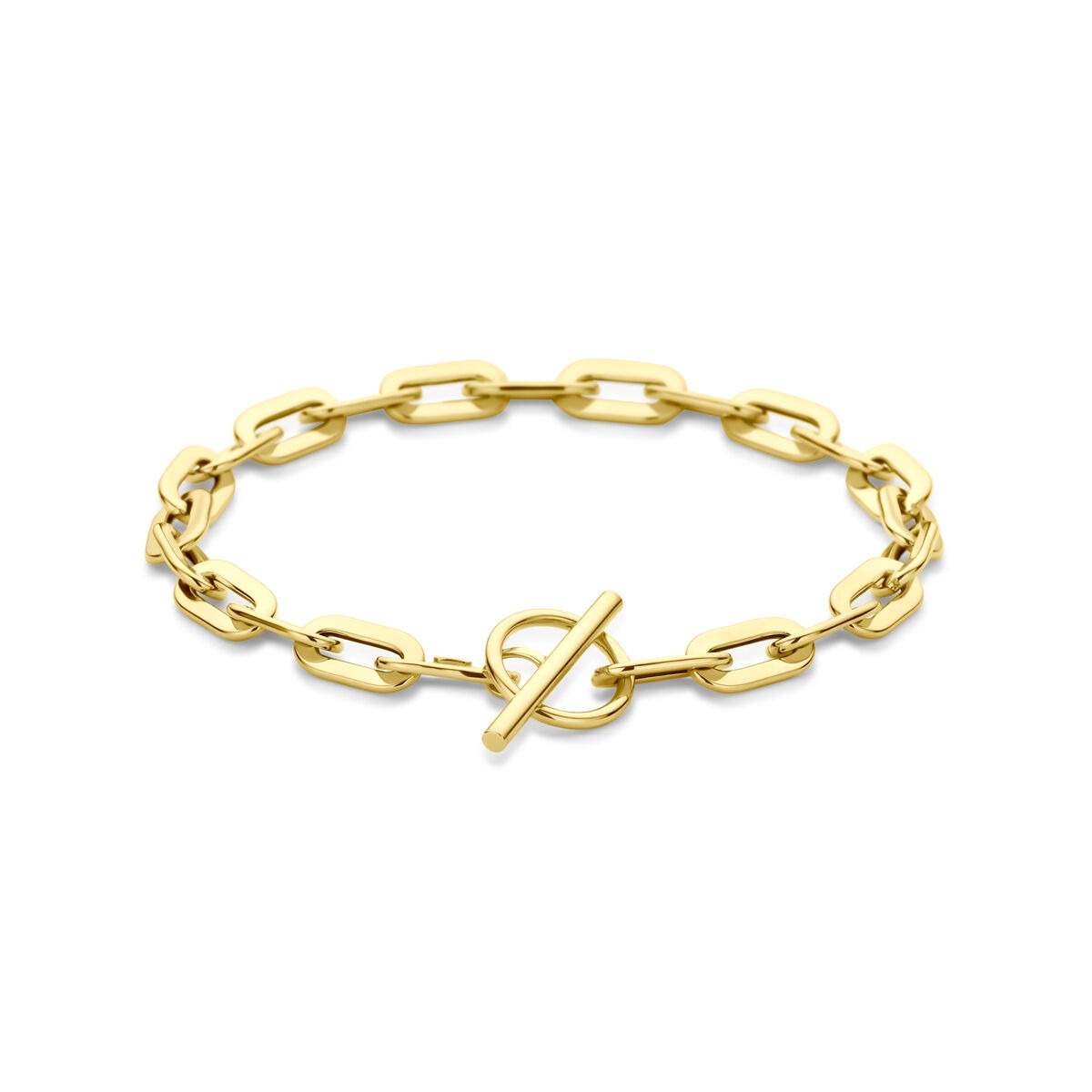 De draaglengte van 19 cm zorgt voor een comfortabele pasvorm, terwijl het kapittelslot niet alleen praktisch, maar ook stijlvol is – een charmant detail dat gezien mag worden. Deze armband is zowel solo als in combinatie met andere gouden dames armbanden een elegante keuze.