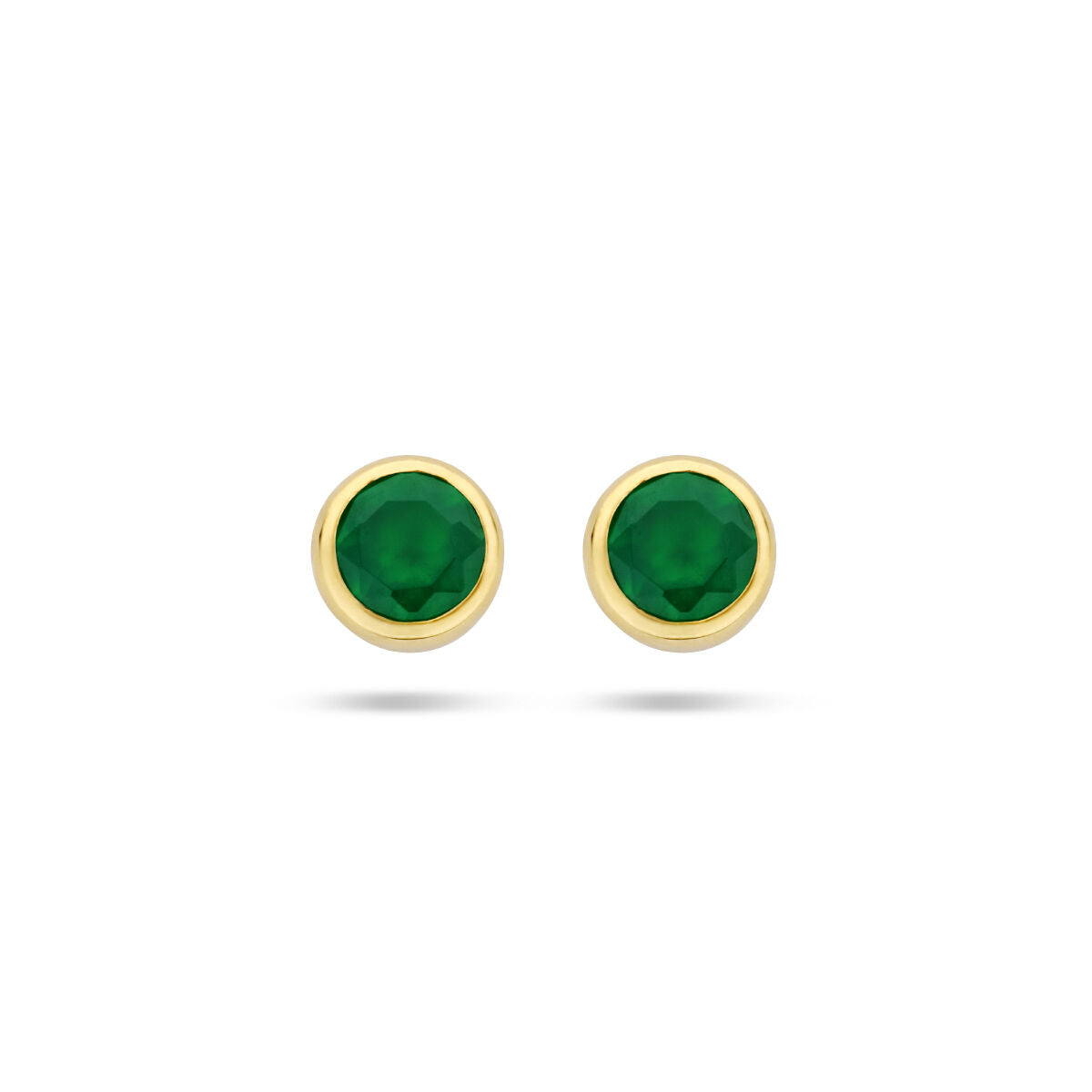 Ohrstecker aus 14-karätigem Gelbgold mit wunderschönem grünen Achat. Die Ohrstecker haben einen Durchmesser von 4,5 mm.