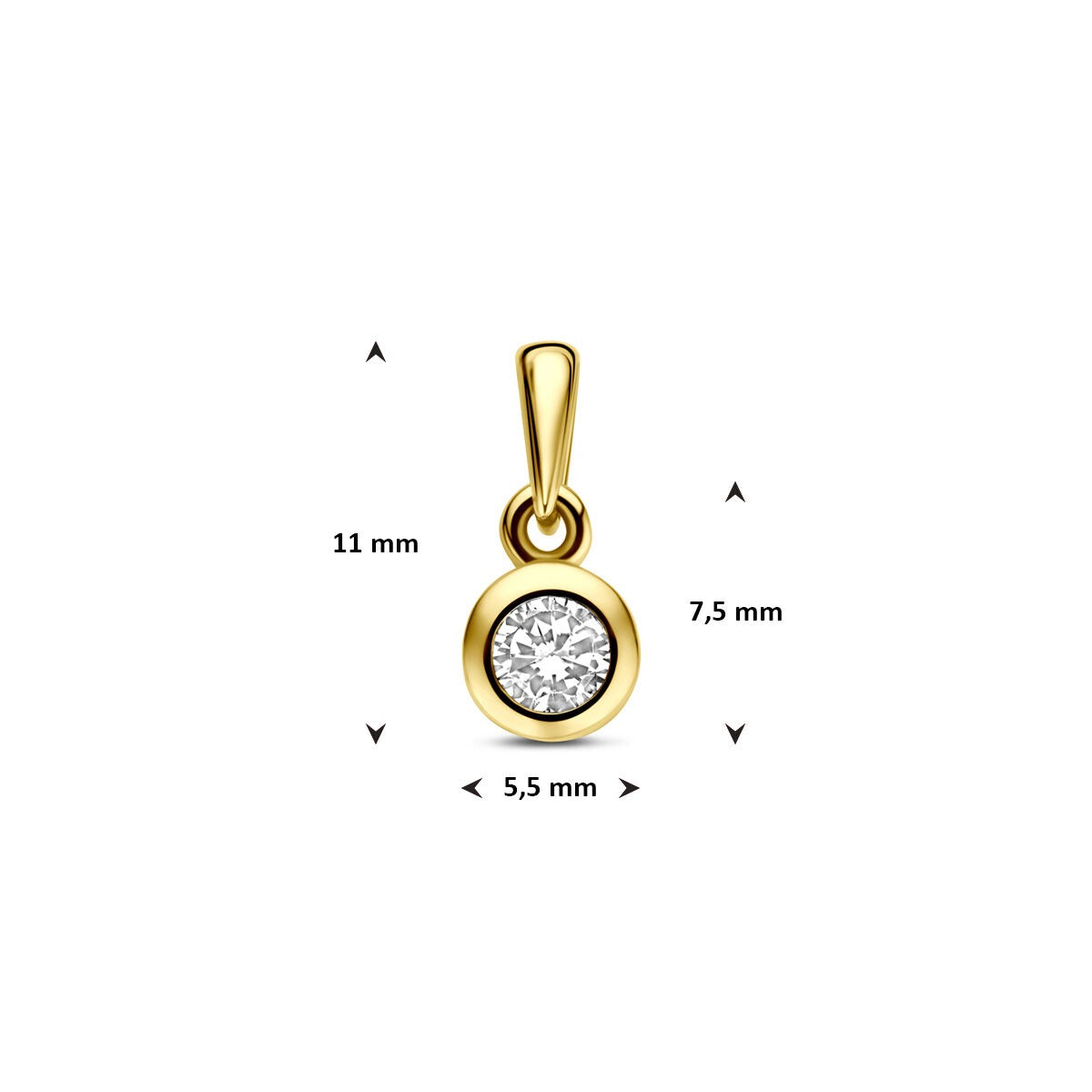 Met een totale hoogte van 11 mm is deze hanger verfijnd van formaat, ideaal om solo te dragen of te combineren met andere sieraden voor een gelaagde look. De warme glans van het goud en de heldere schittering van de zirkonia maken dit sieraad geschikt voor zowel dagelijks gebruik als feestelijke momenten.