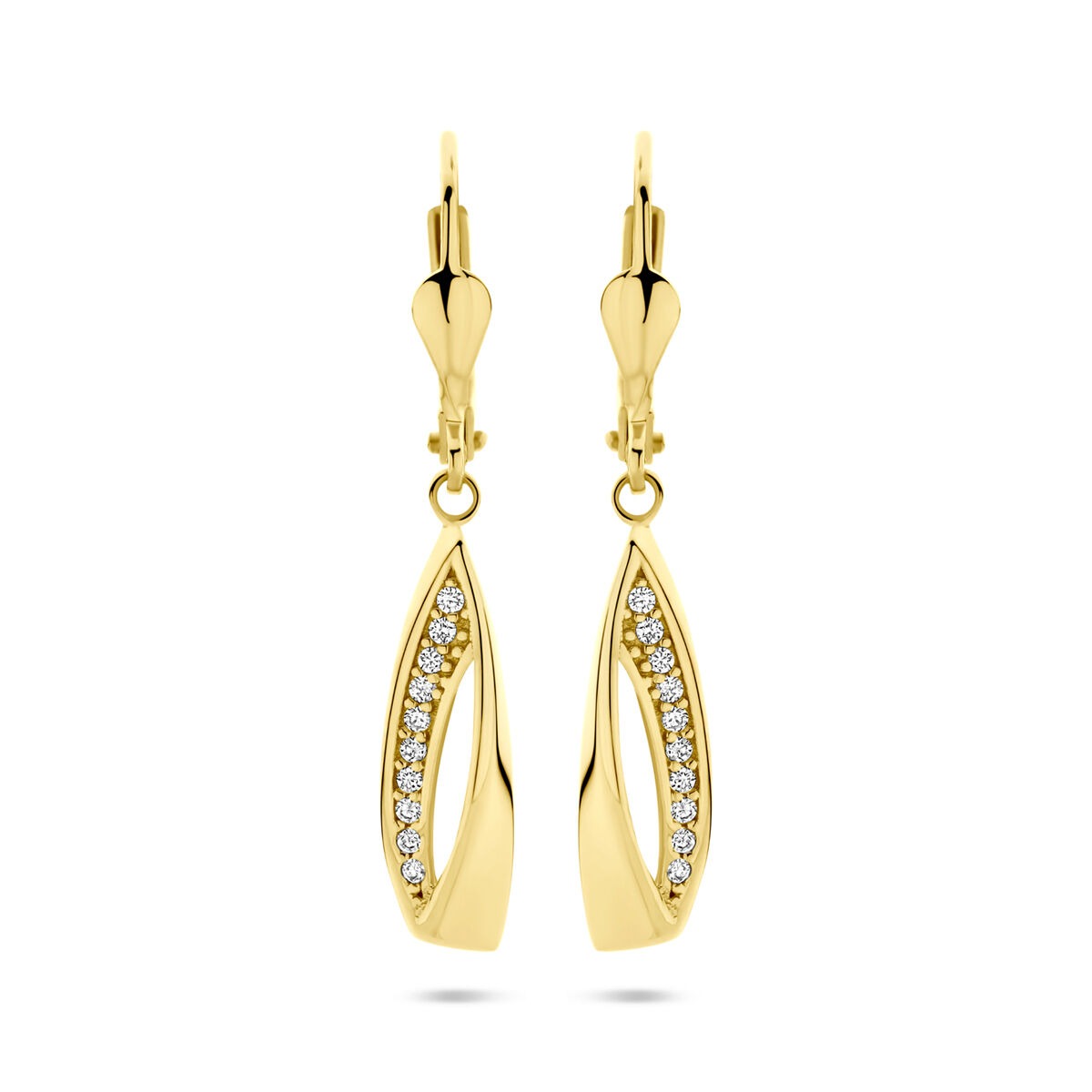 Het warme geelgoud vormt een prachtig contrast met de heldere zirkonia’s, wat deze oorhangers uitermate geschikt maakt voor zowel een feestelijke avond als een stijlvolle daglook. Dankzij de comfortabele brisure sluiting blijven ze stevig op hun plaats, terwijl jij moeiteloos straalt.