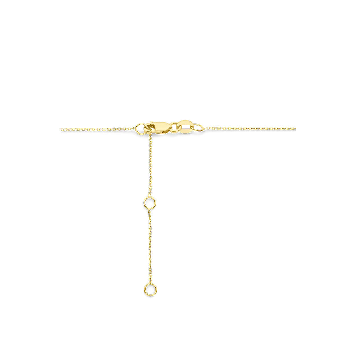 Halskette aus 18-karätigem Gelbgold mit einem Diamanten in Herzform. Die Tragelängen betragen 40, 42 und 44 cm. Die Gliederbreite beträgt 0,7 mm. Die Halskette hat einen Karabinerverschluss.