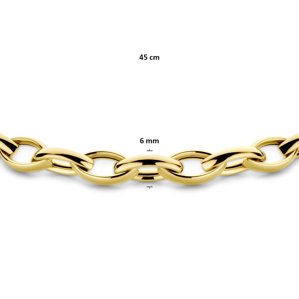Stoer en stijlvol met een vrouwelijke finesse – dit 14k geelgouden collier is een krachtig statement voor elke sieradenliefhebber. De robuuste schakels van 6 mm breed geven het collier een opvallende uitstraling, terwijl het warme goud zorgt voor een luxueus en tijdloos karakter. De schakelachtige structuur voegt diepte en textuur toe aan het ontwerp, waardoor dit sieraad perfect is voor zowel dagelijks gebruik als bijzondere gelegenheden.