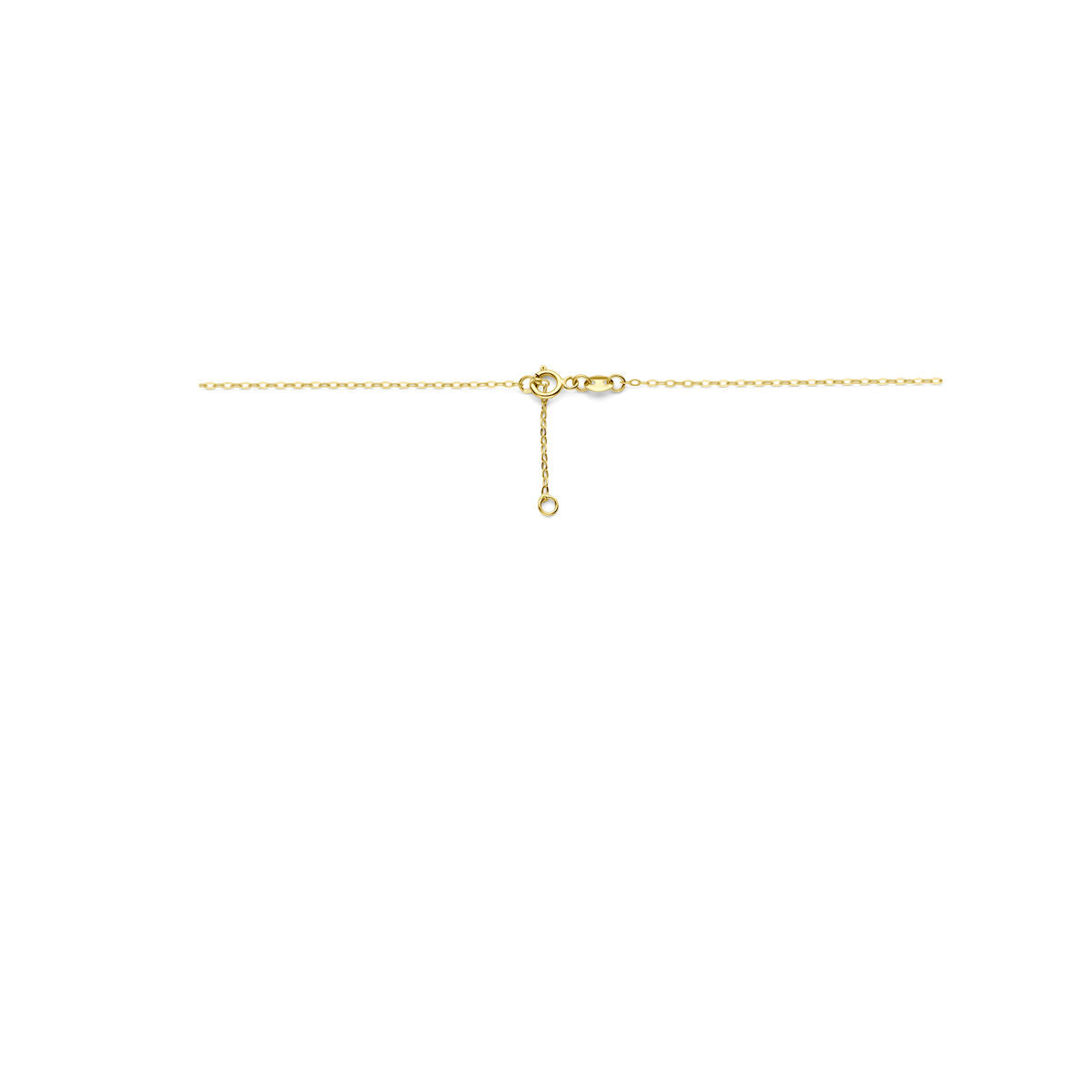 Het Van der Kooij Collectie collier infinity 41 + 2 cm, uitgevoerd in 14K geelgoud, heeft een verstelbare sluiting en een klein verlengkettinkje - een perfect dames sieraad op een witte achtergrond.