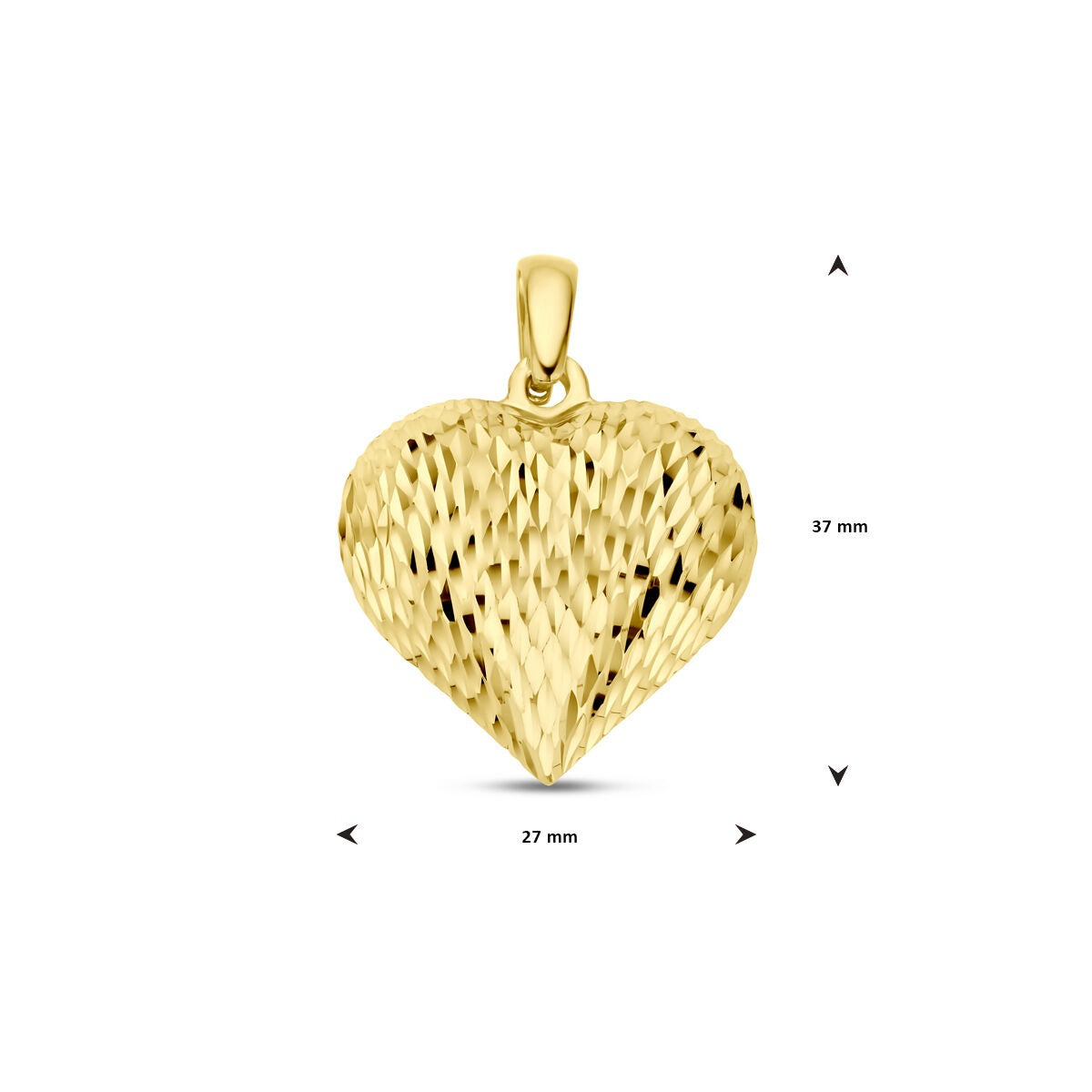 Anhänger aus Gelbgold auf 925er Silber mit Herz. Das Herz hat eine Gesamthöhe von 37 mm. Das Herz hat einen Durchmesser von 27 mm. Keine Garantie auf die Beschichtung.
