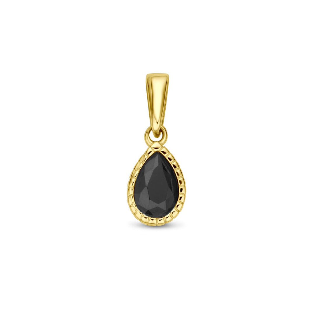14k Geelgouden hanger met zwarte zirkonia in entourage zetting