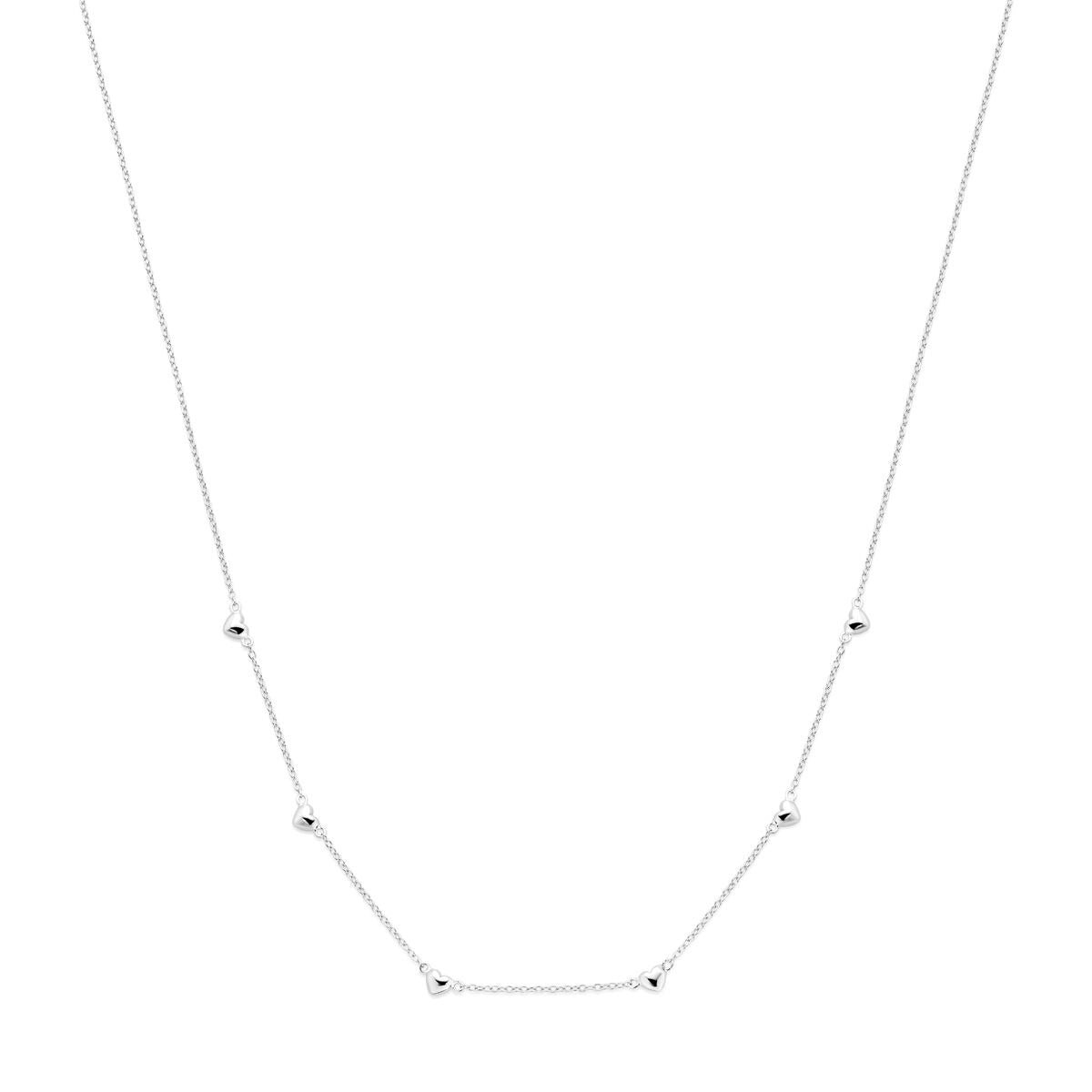 Zilveren dames ketting met hartjes – gerhodineerd collier 45 cm