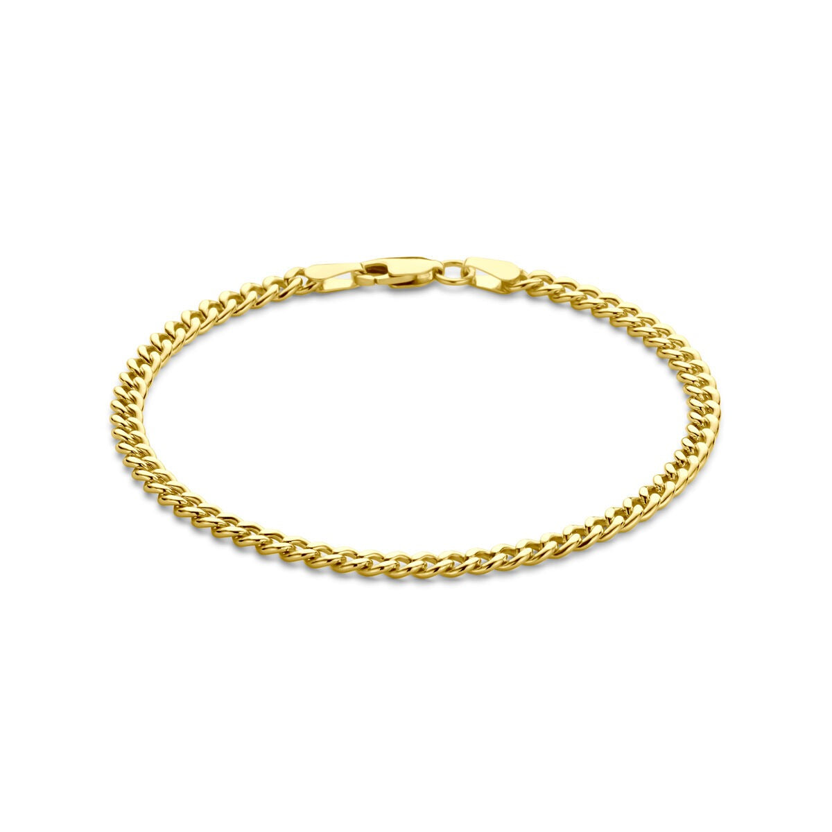 Dit elegante collier is vervaardigd uit 14k geelgoud met een stevige kern van 925 zilver, ook wel bekend als Silgold. De 3,7 mm brede geslepen gourmette schakel zorgt voor een verfijnde schittering, terwijl de royale lengte van 60 cm een stijlvolle, klassieke valling biedt.