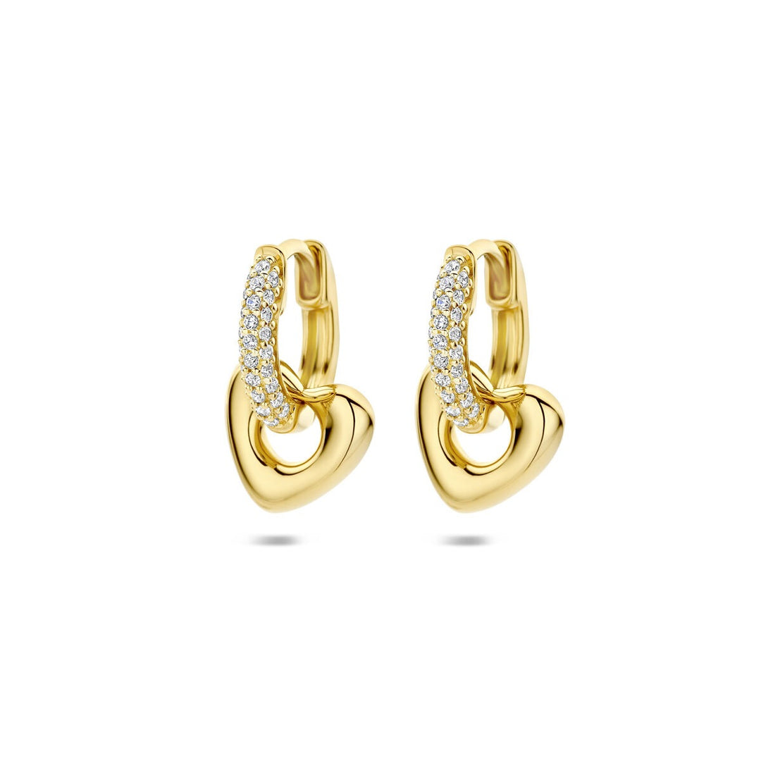 Verguld Zilveren Oorringen met Hartje en Zirkonia