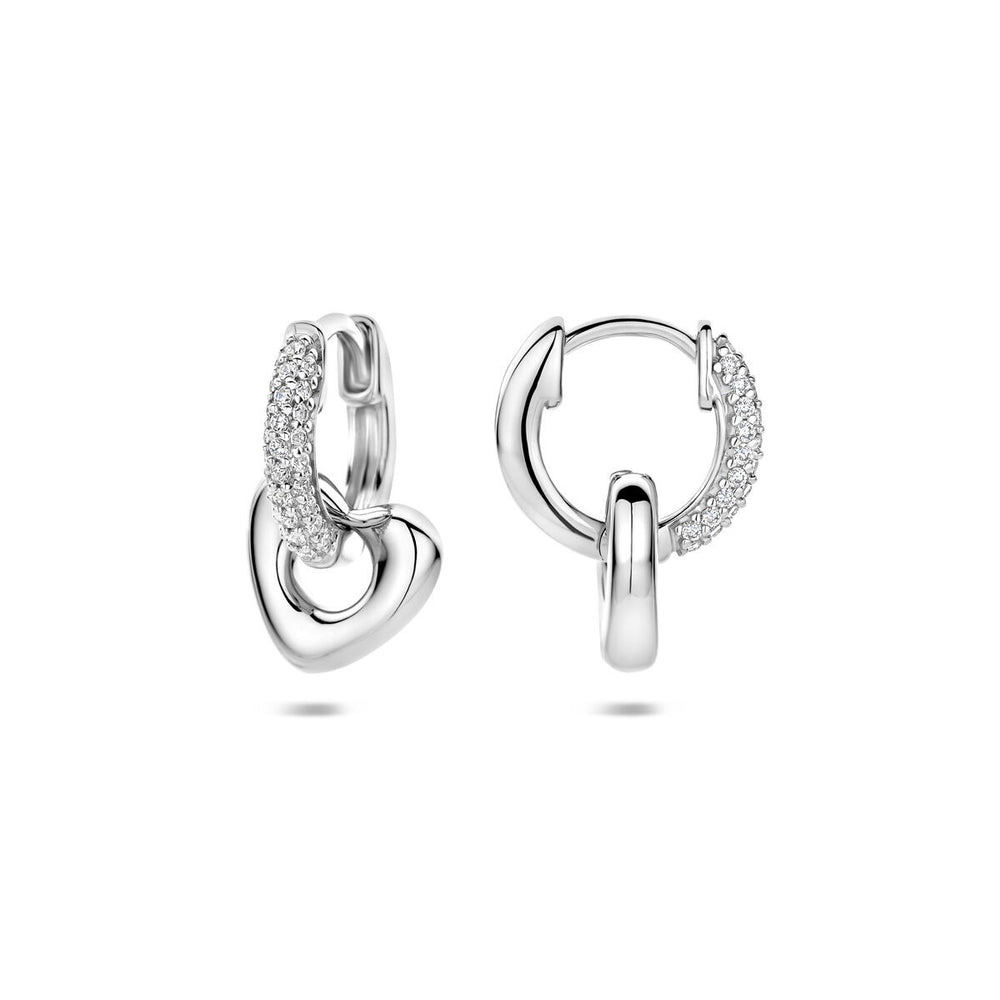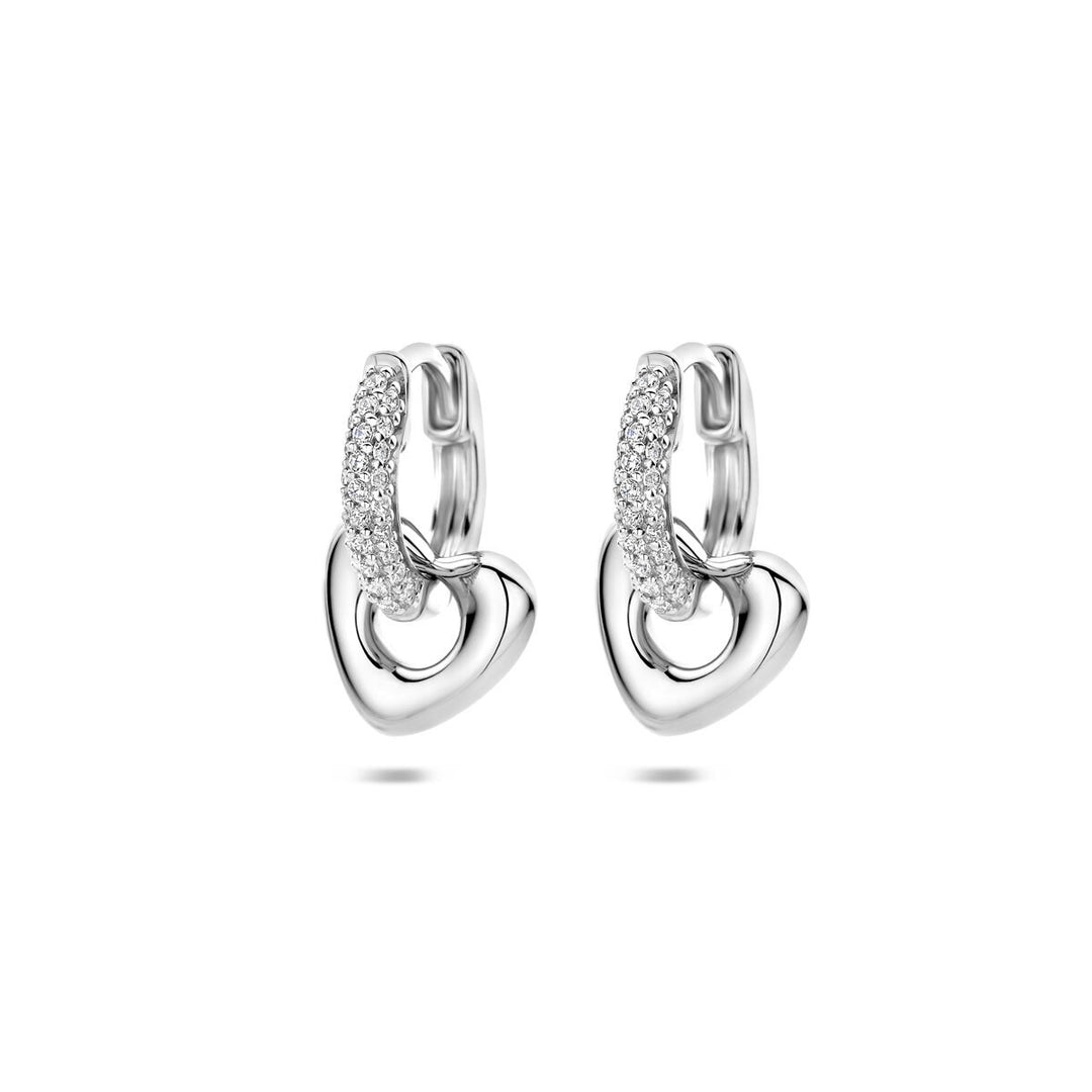 Zilveren Oorringen met Hartje en Zirkonia Gerhodineerd