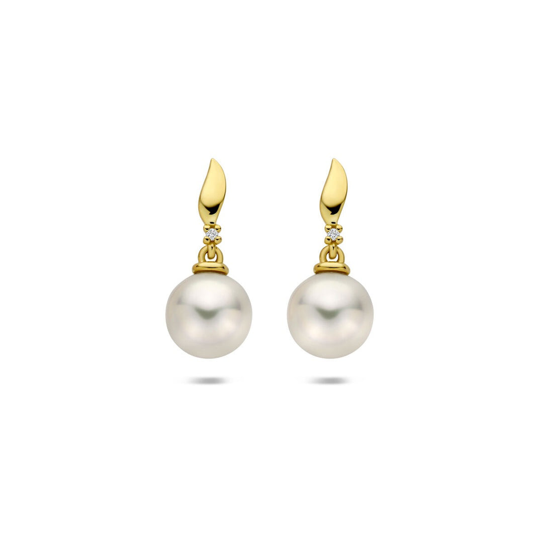 Gouden oorhangers met diamant en parel – 14k geelgoud