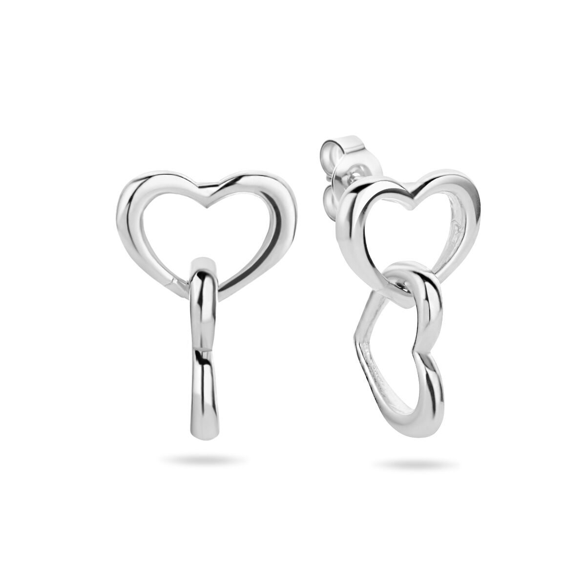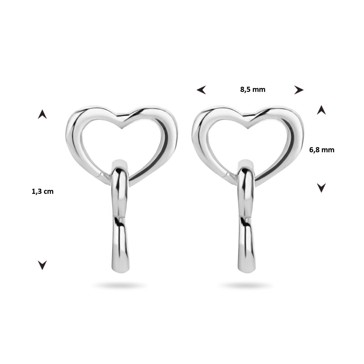 Rhodinierte 925er Silberohrringe mit zwei Herzen. Die Ohrringe haben eine Gesamthöhe von 1,3 cm und eine Breite von 8,5 mm.