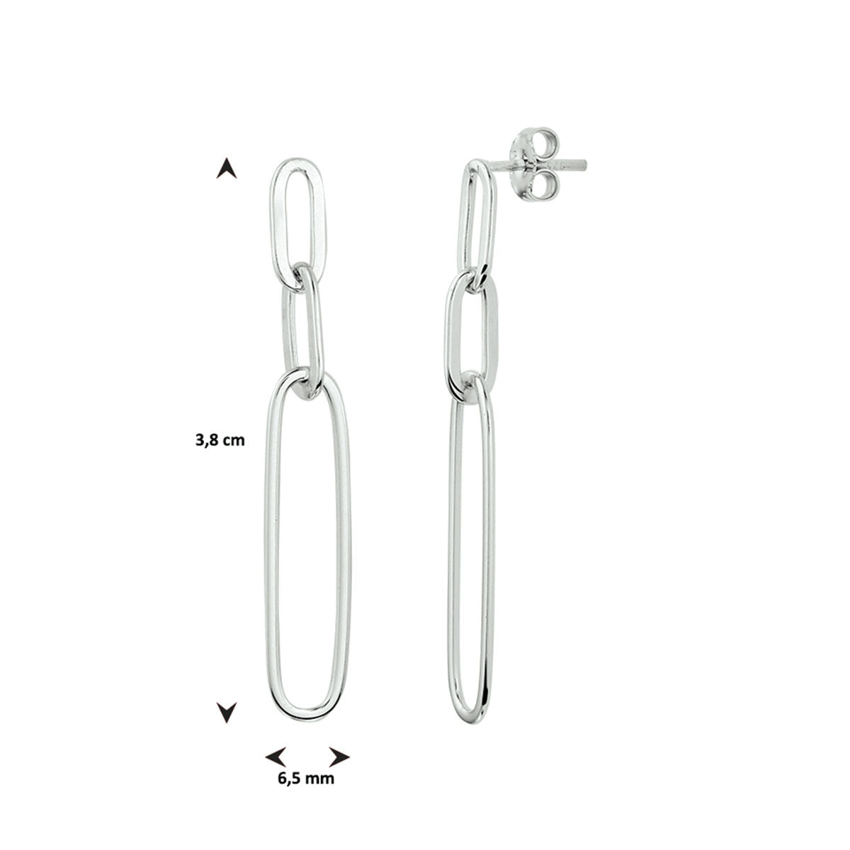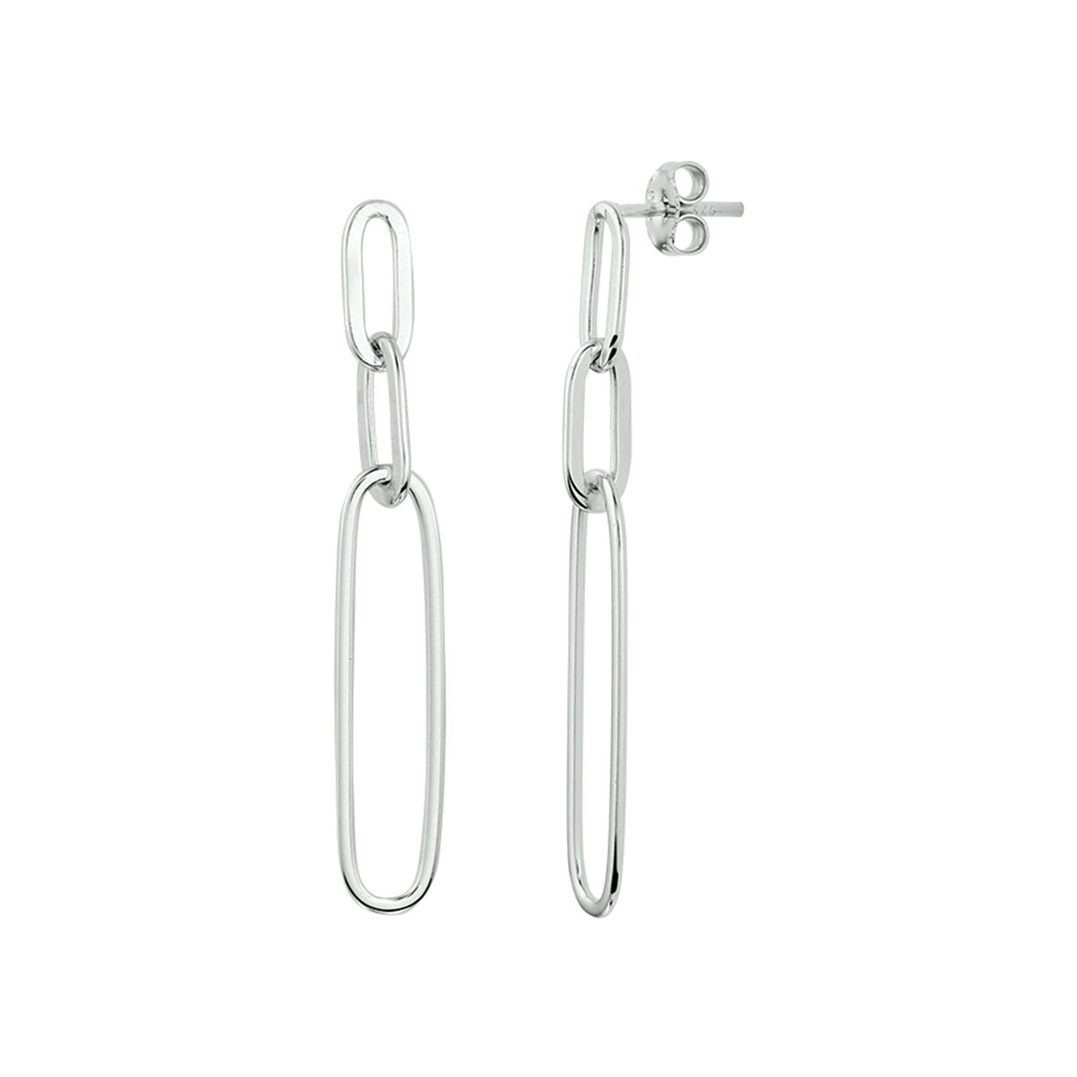 Rhodinierte 925er Silberohrringe im gliederartigen Stil. Die Ohrringe haben eine Gesamthöhe von 3,8cm.
