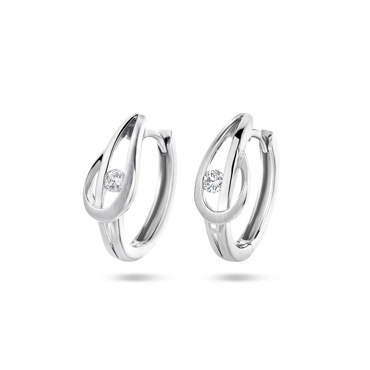 Deze elegante klapoorringen zijn vervaardigd van 925 sterling zilver en afgewerkt met een beschermende rodiumlaag, waardoor ze hun heldere zilverwitte glans langdurig behouden. In het ontwerp is een schitterende transparante zirkonia verwerkt, briljant geslepen en modern ingespannen. Deze zetwijze laat de steen optimaal licht vangen en zorgt voor een verfijnde, eigentijdse uitstraling met een subtiele luxe.