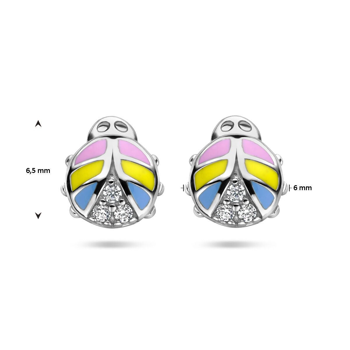 Deze speelse oorknoppen zijn vervaardigd van 925 sterling zilver en afgewerkt met een beschermende rodiumlaag, waardoor ze hun heldere zilverkleurige glans langdurig behouden. Het ontwerp in de vorm van een vrolijk lieveheersbeestje wordt verrijkt met fonkelende transparante zirkonia’s in een pavezetting. De subtiele schittering in combinatie met kleurrijke emaille accenten geeft de oorknoppen een levendig en kindvriendelijk karakter.