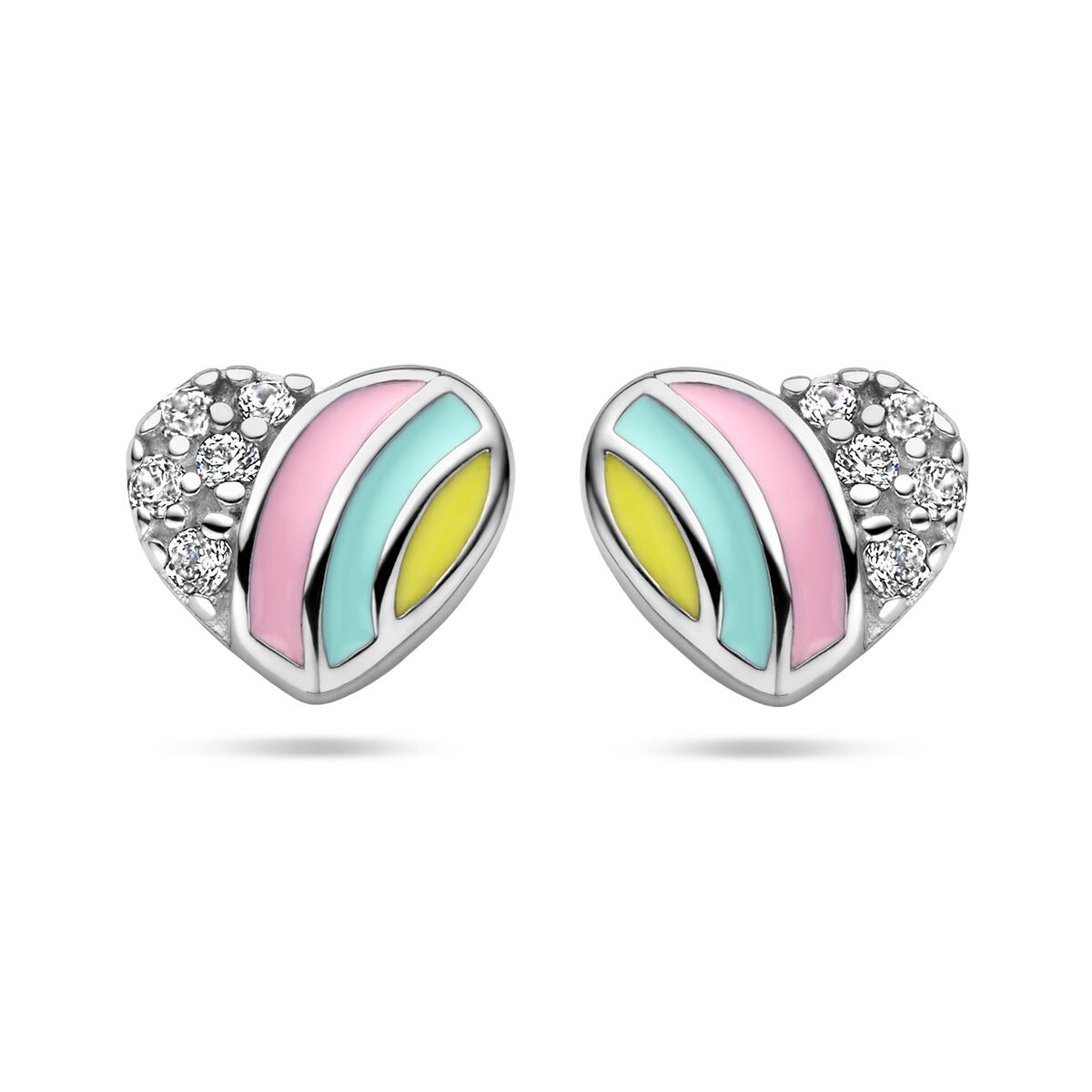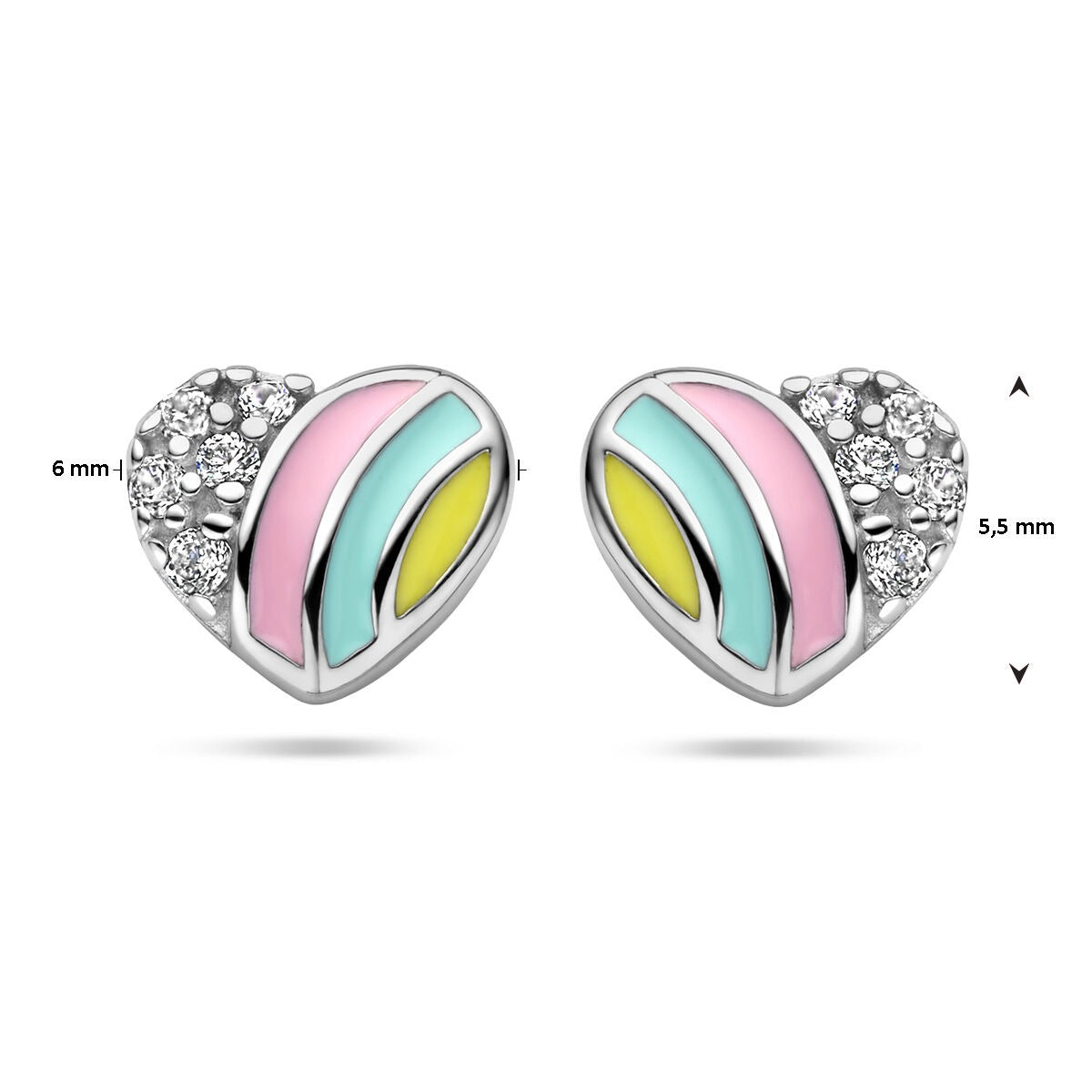 Het hartje heeft een verfijnd formaat en wordt extra vrolijk door de combinatie met kleurrijke emaille accenten, waardoor de oorknoppen een frisse en kinderlijke charme krijgen. Dankzij de poussettesluiting zijn ze comfortabel en veilig om te dragen, ideaal voor dagelijks gebruik. Door het unisex ontwerp zijn deze oorknoppen geschikt voor ieder kind en bijzonder mooi als cadeau voor een speciale gelegenheid zoals Valentijn of een verjaardag.