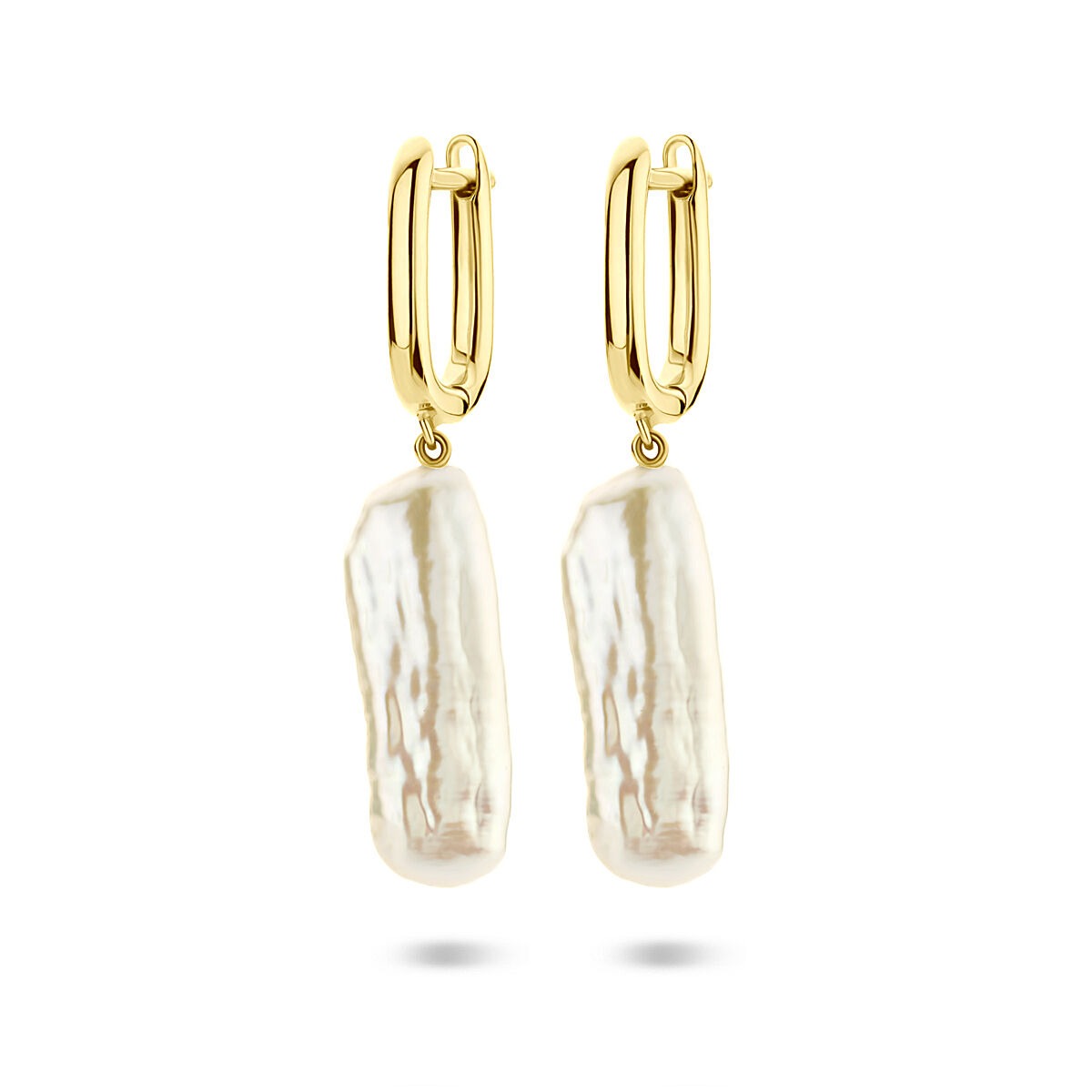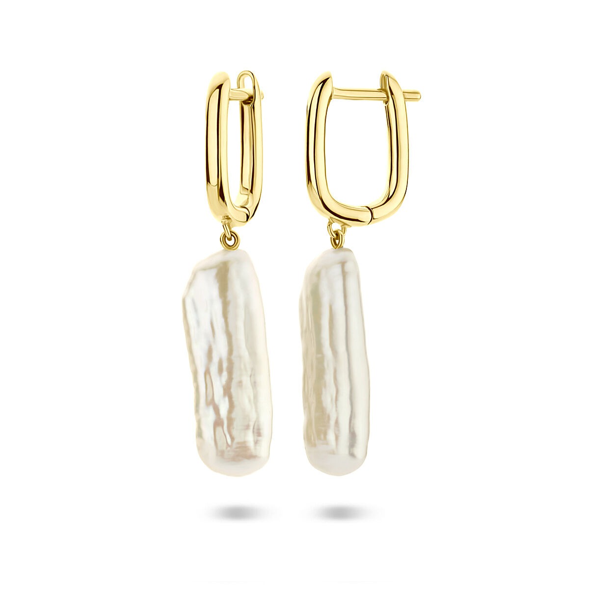 Deze elegante klapoorringen van verguld op 925 zilver zijn een verfijnde blikvanger voor de moderne vrouw. Het ontwerp is uitgevoerd met een klassieke witte parel die sierlijk onder de oorbel hangt, wat zorgt voor een tijdloze, vrouwelijke uitstraling. Met een totale hoogte van 38 mm en een slanke breedte van 2,5 mm combineren deze oorbellen subtiele elegantie met een sierlijk lijnenspel.