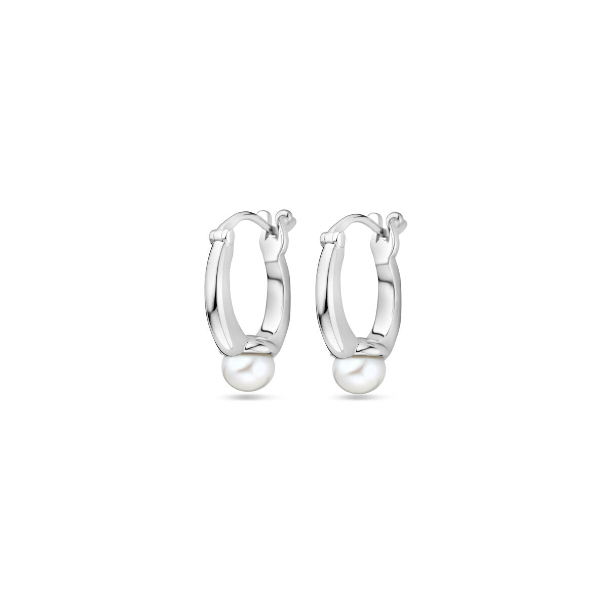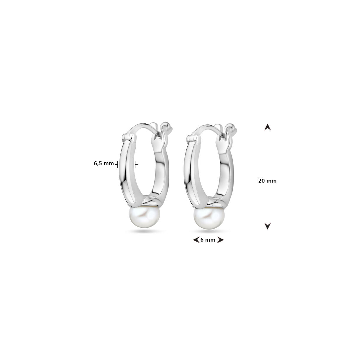 Gerhodineerd 925 zilveren oorringen uitgevoerd met een parel. De oorringen hebben een afmeting van 20x6,5mm