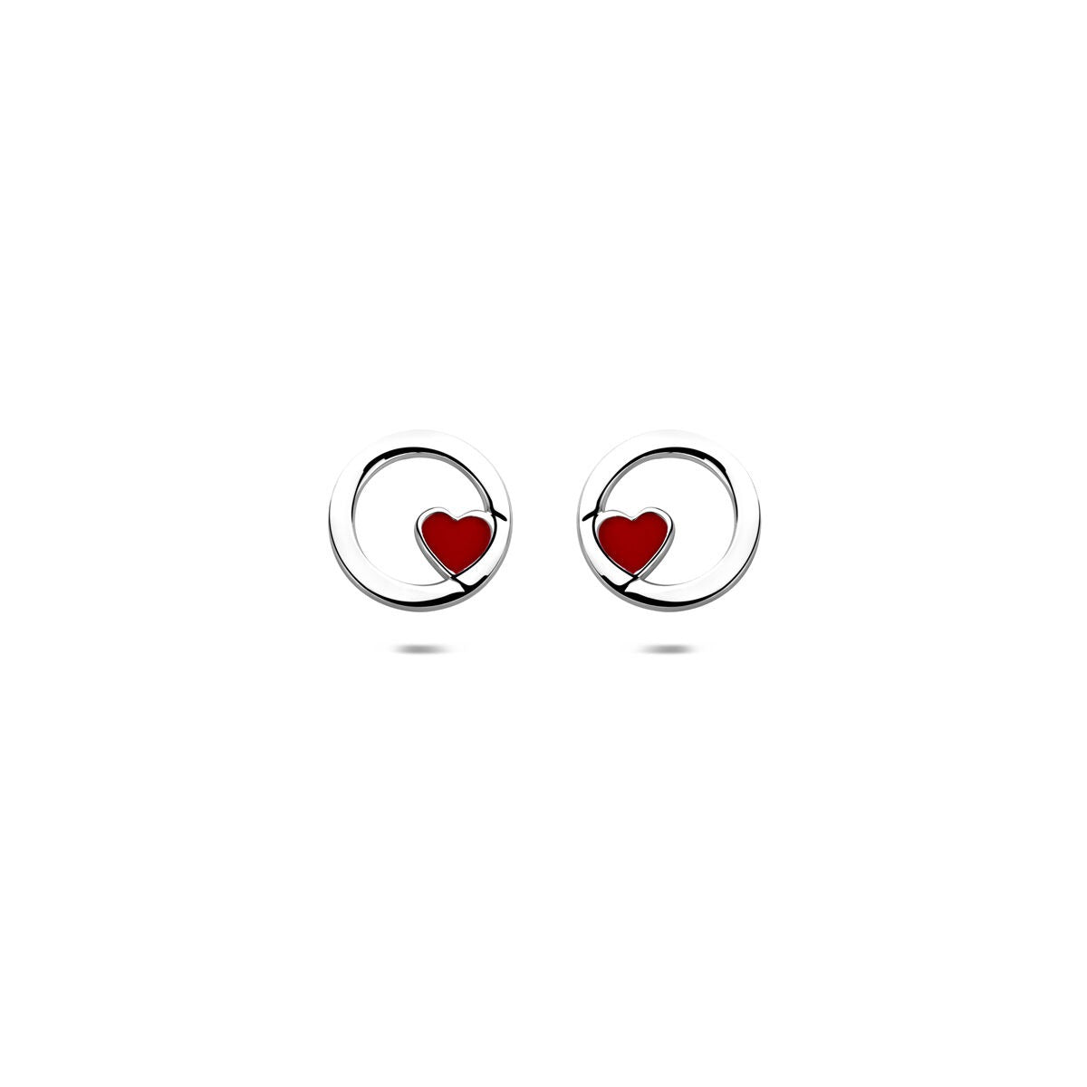Zilveren kinder oorknopjes met rood emaille hartje – gerhodineerd 925 zilver 8mm