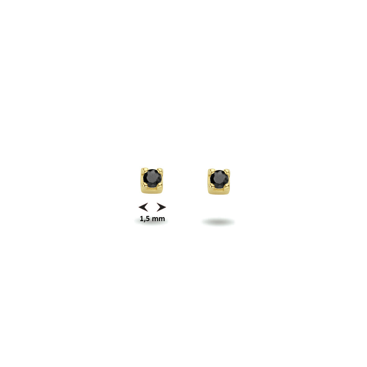 Ohrstecker aus 14-karätigem Gelbgold mit einem wunderschönen schwarzen Zirkonia. Die Ohrstecker haben einen Durchmesser von 1,5 mm.