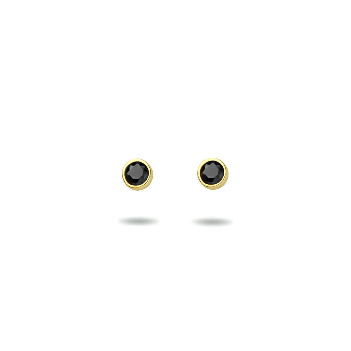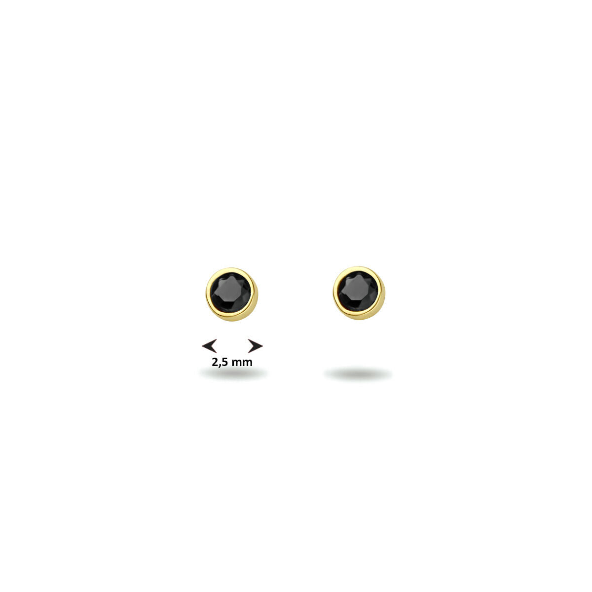 Ohrstecker aus 14-karätigem Gelbgold mit einem wunderschönen schwarzen Zirkonia. Die Ohrstecker haben einen Durchmesser von 2,5 mm.