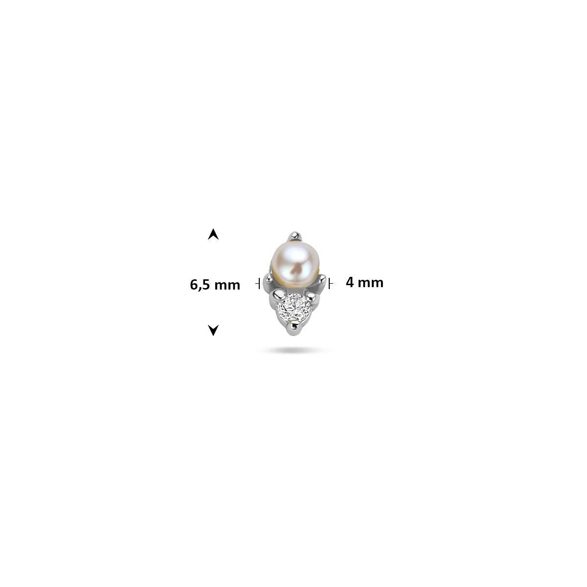 Gerhodineerd zilveren flat back piercing met parel en zirkonia
