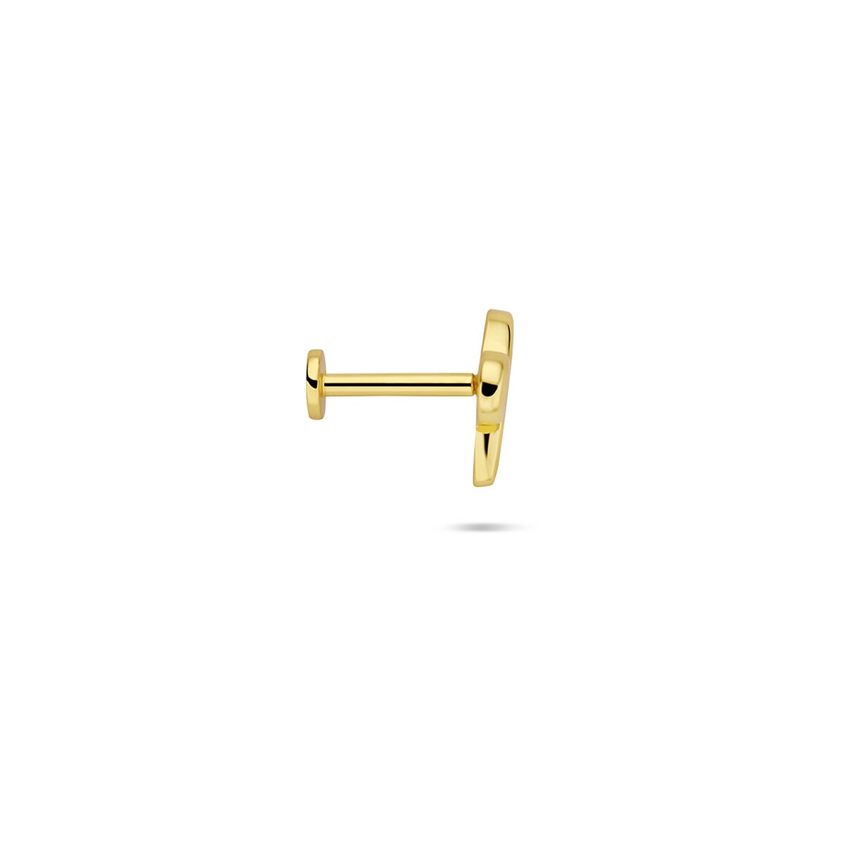 Deze sierlijke verguld zilveren flat back piercing in de vorm van een strikje voegt een vleugje vrouwelijkheid en speelse elegantie toe aan elke earparty. Vervaardigd uit 925 zilver en afgewerkt met een warme geelgouden plating, straalt dit sieraad verfijning uit met een subtiel knipoog naar klassieke charme.