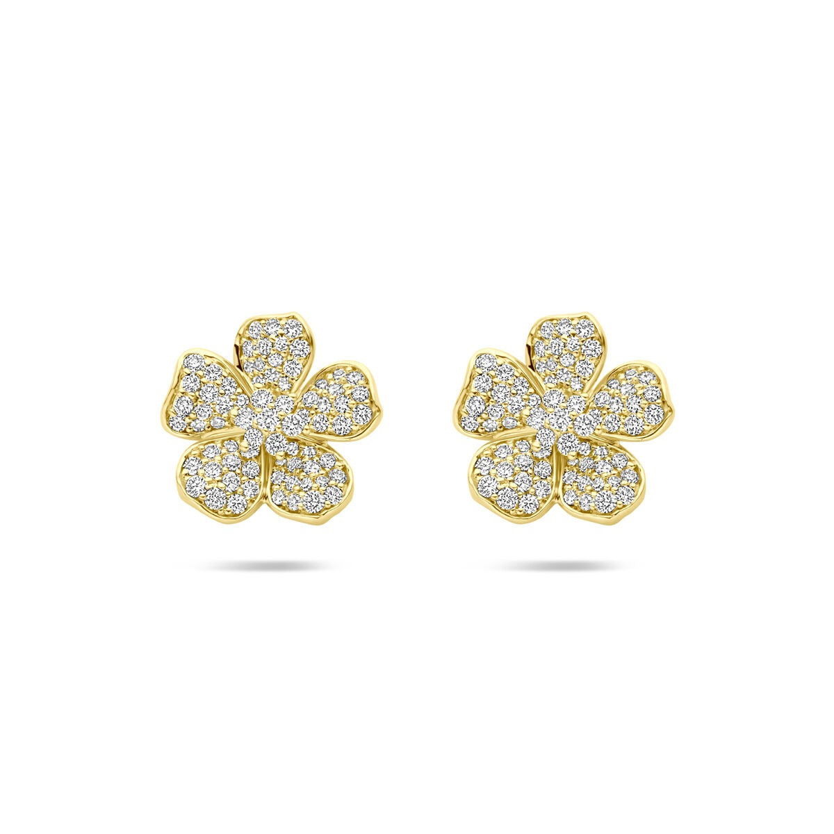 Deze betoverende gouden oorknoppen met diamant zijn ontworpen in de vorm van een verfijnde bloem en stralen pure elegantie uit. Elk bloemblaadje is zorgvuldig vervaardigd uit 14 karaat geelgoud en rijkelijk bezet met briljant geslepen diamanten, met een totaalgewicht van 0.70 ct. De pavézetting zorgt voor een weelderige fonkeling, waarbij elke steen perfect het licht vangt.